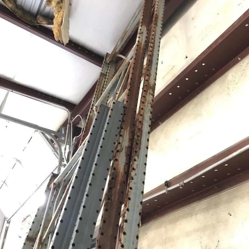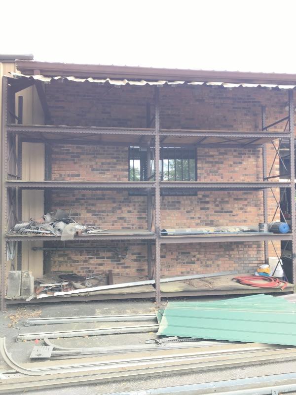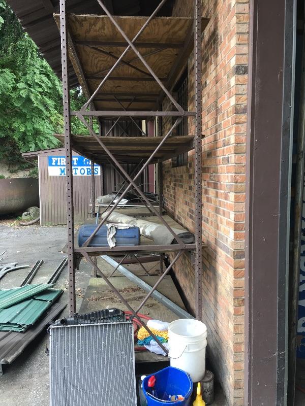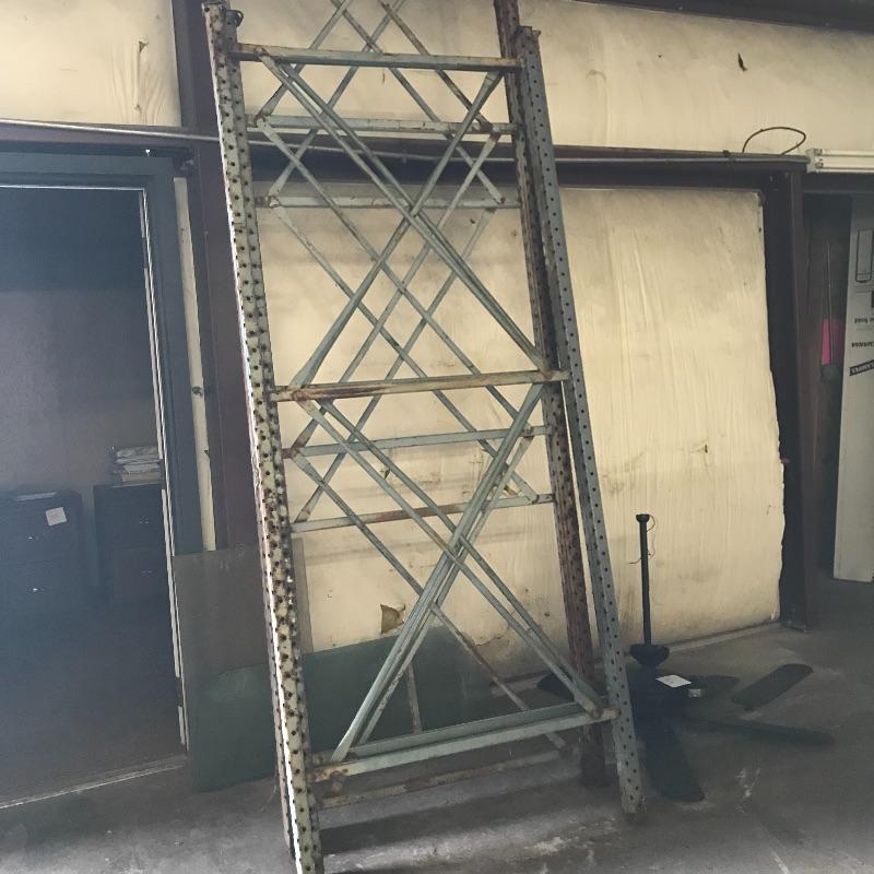 Large commercial shelf units. Great for storing all your heavy and large items on pallets or other Disassembled shelves measure approximately 42” x 101.5” (small), and approximately 42”x 168” (large) Assembled Storage rack measures 42” x 148” x 201”. Large shelf has welded parts but will be cut and disassembled. Bring help items are substantial.