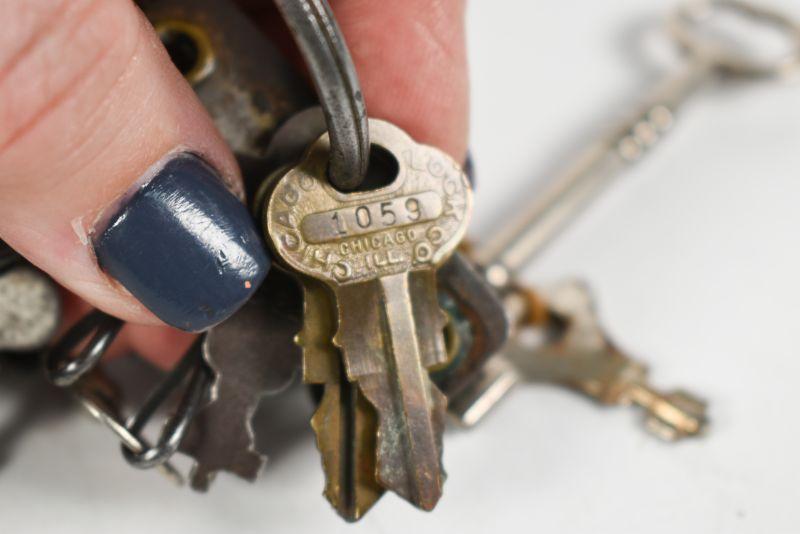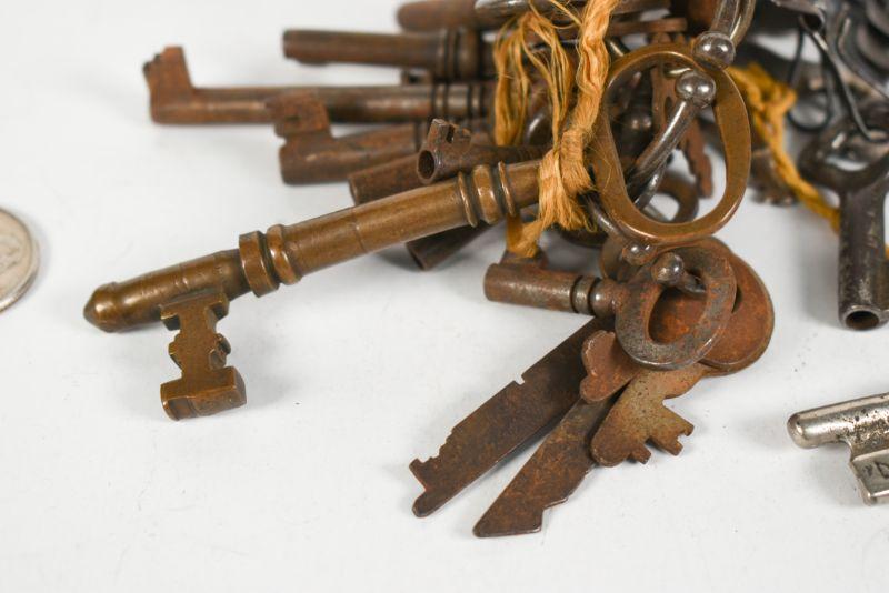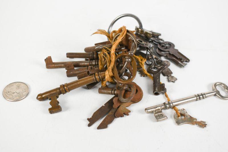 A plethera of keys of all kinds, some quite old. **Please read Terms and Conditions before placing a bid. Pick up is Sunday, December 22 from 11am to 3pm or Monday, December 23 from 4pm-7pm in Mantua, NJ. All sales are final. All sales are as is, where is. Please review all photos. Props are not included. Measurements are approximate.