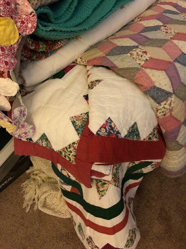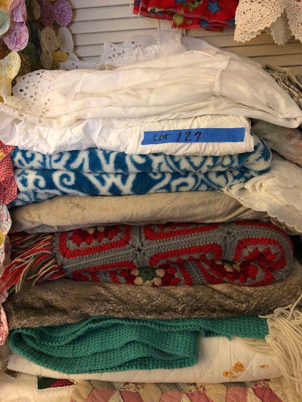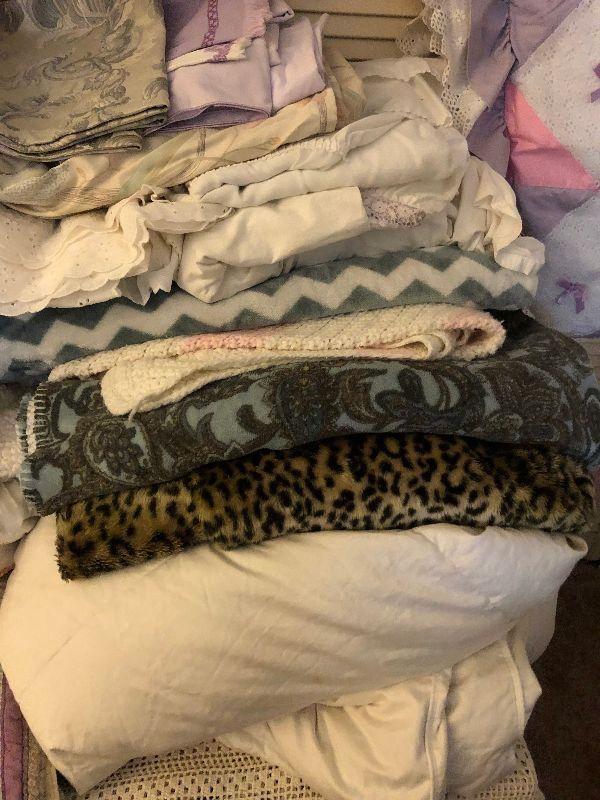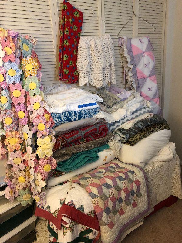 Blankets, comforters, quilts, afghans, lace tablecloths and other miscellaneous items