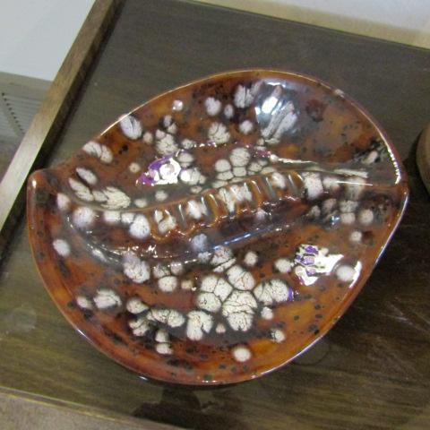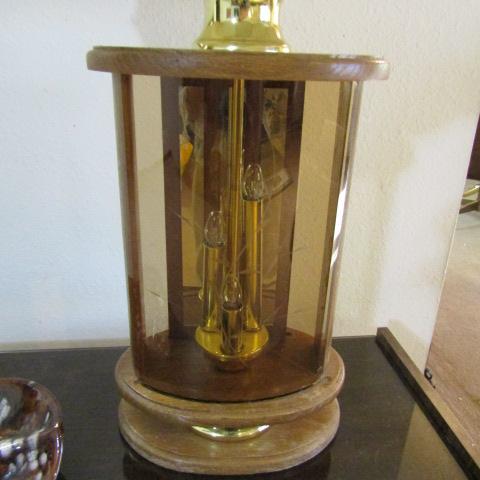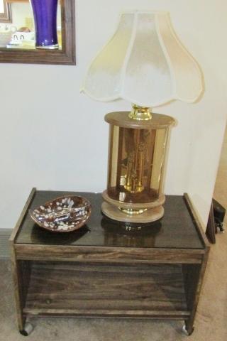GLASS BASE TABLE LAMP AND AN ASHTRAY