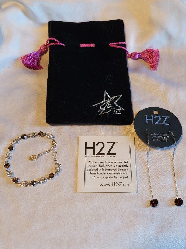 Lot 126: New H2Z (Swarovski Elements) Smoky Topaz Bracelet and Earrings