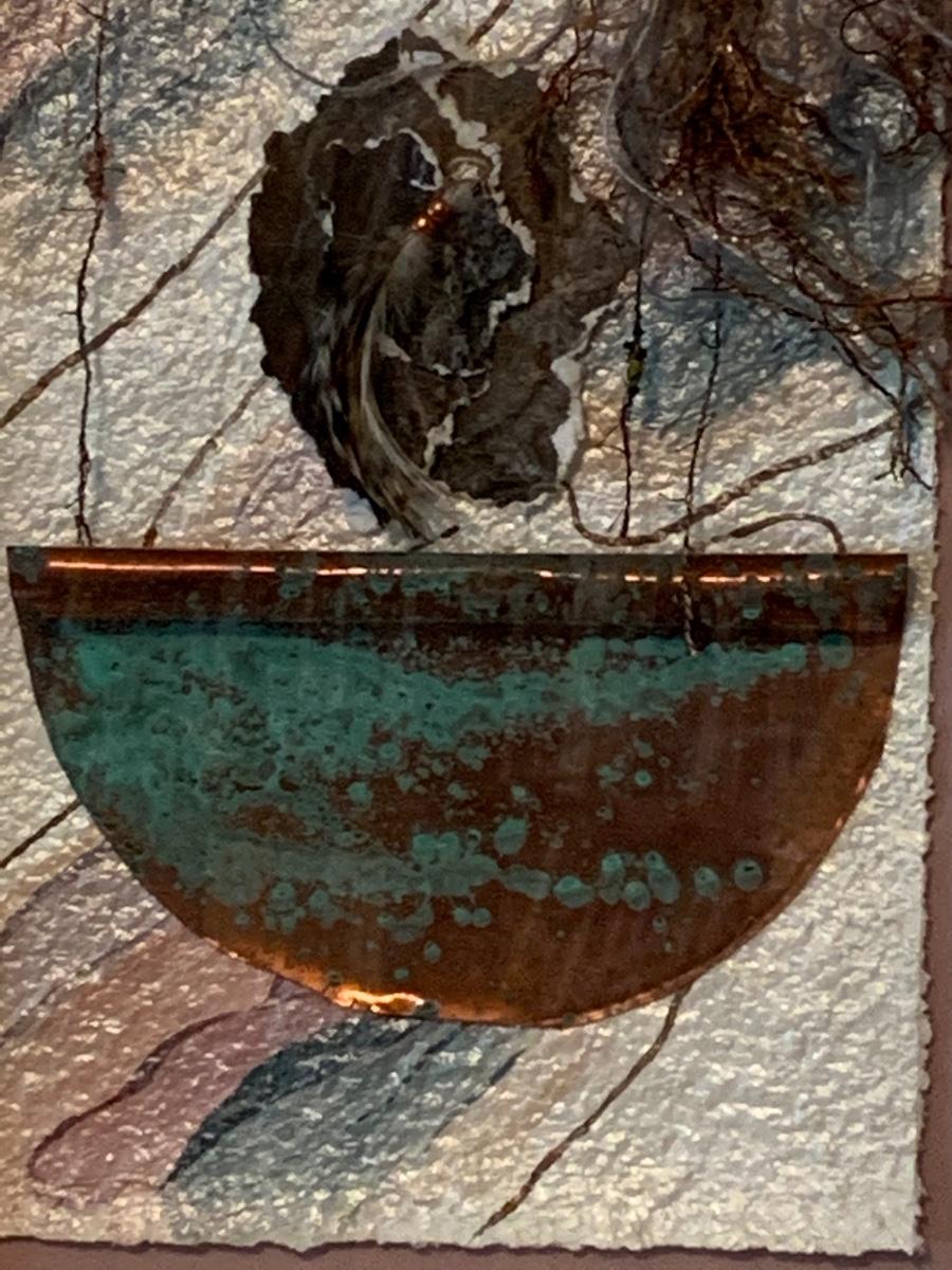 Various techniques were use to create this piece, the interior pieces are copper.