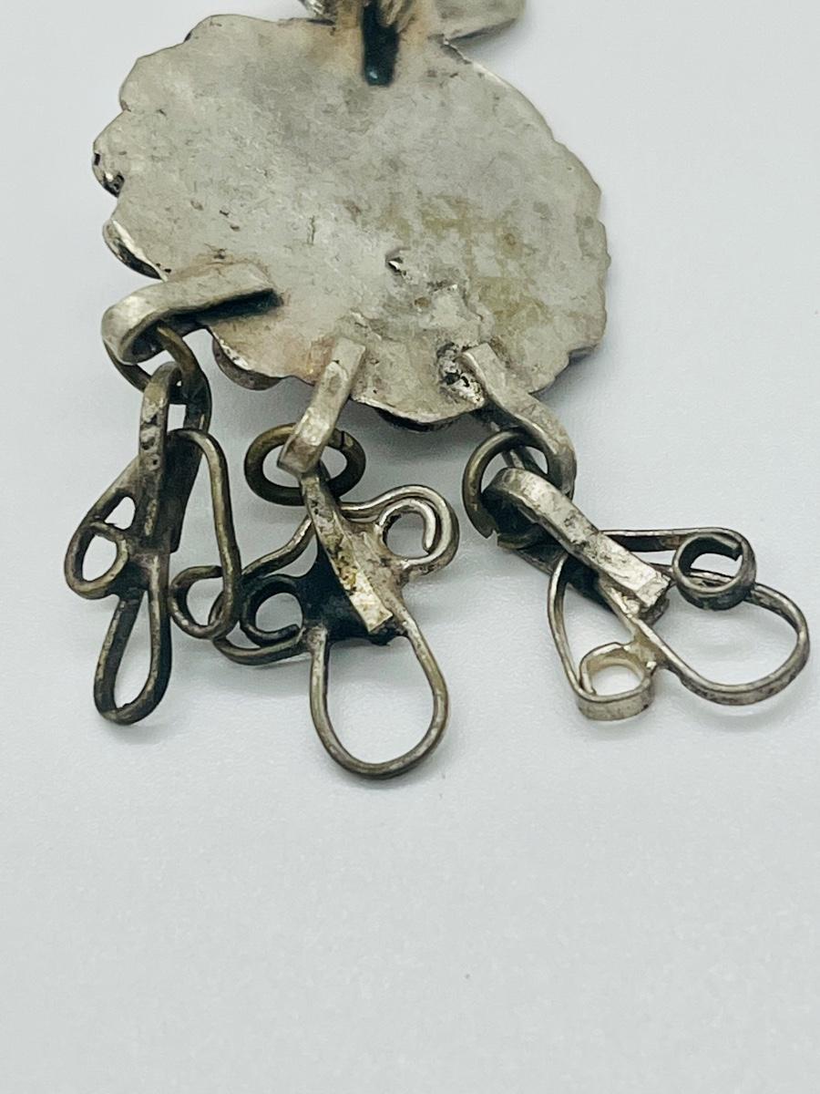 Handcrafted, not sure if pot metal or pewter, not magnetic, acid test ruled out silver and gold. The pictures show condition, measurements if taken, and what is included in the lot. Due to the large amount that we photograph and the time frame, we are not always able to take measurements. All items unless noted, are pre-owned and have been used, and are untested. Thank you