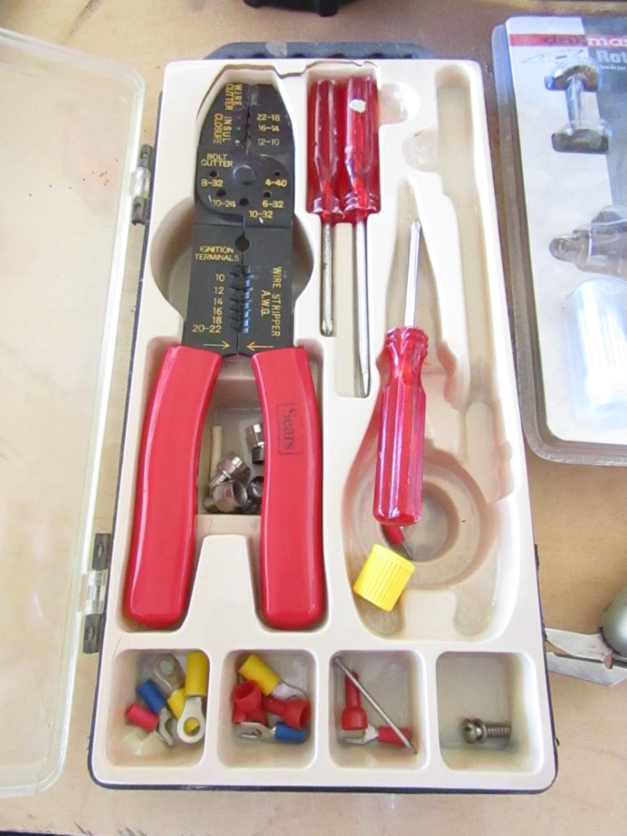 LOT 127, ROTARY TOOLKIT, WIRE STRIPPER, FLASHLIGHT HARDWARE ORGANIZER AND MORE