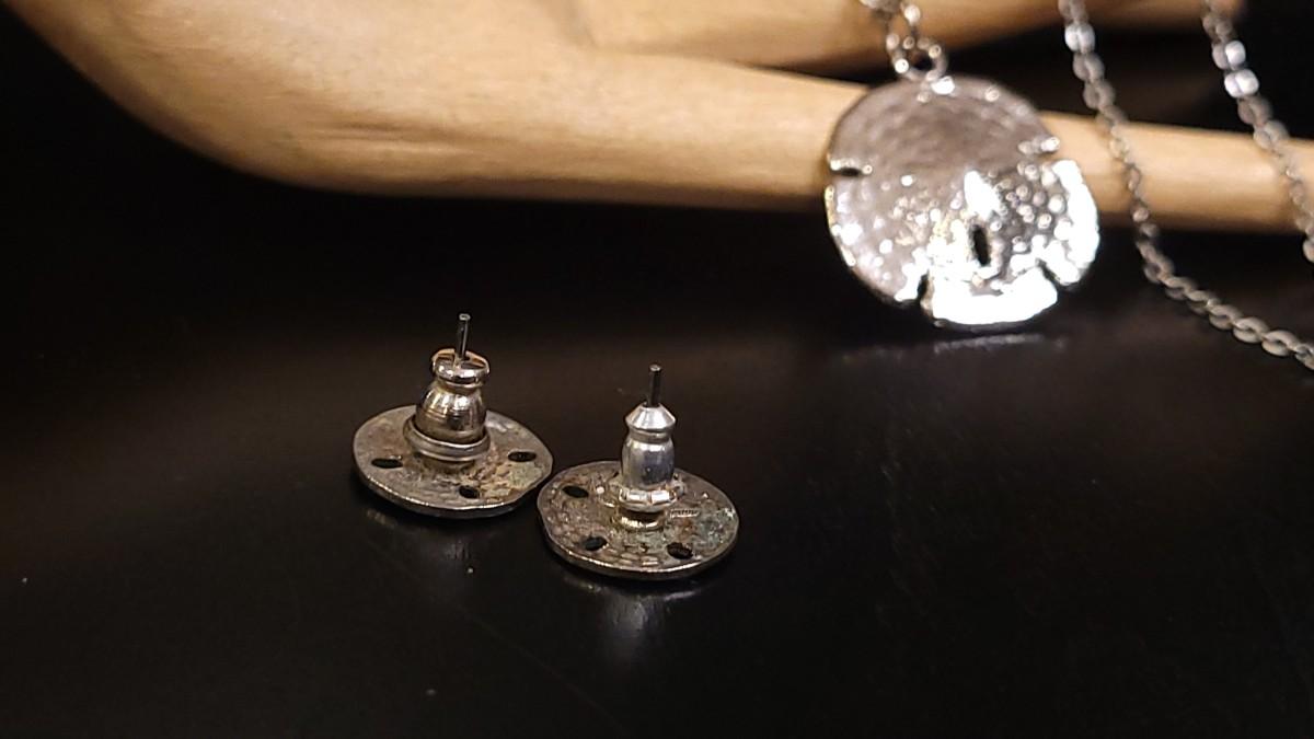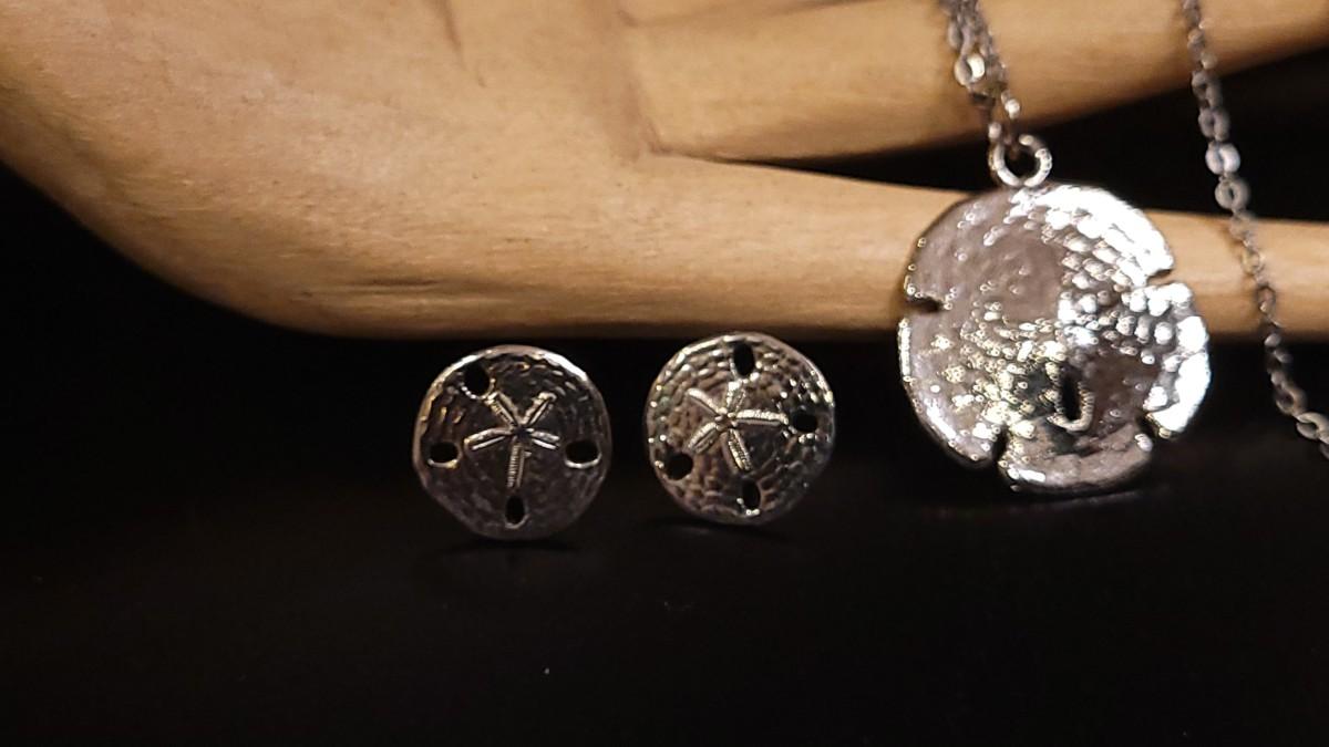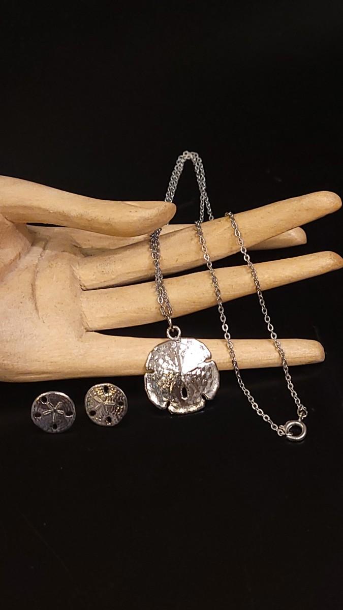 Lot 127: Sterling Sand Dollar Pendant, Necklace & Earrings