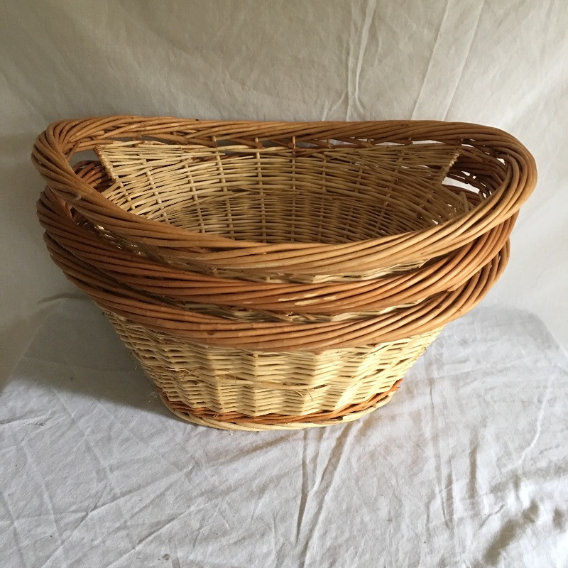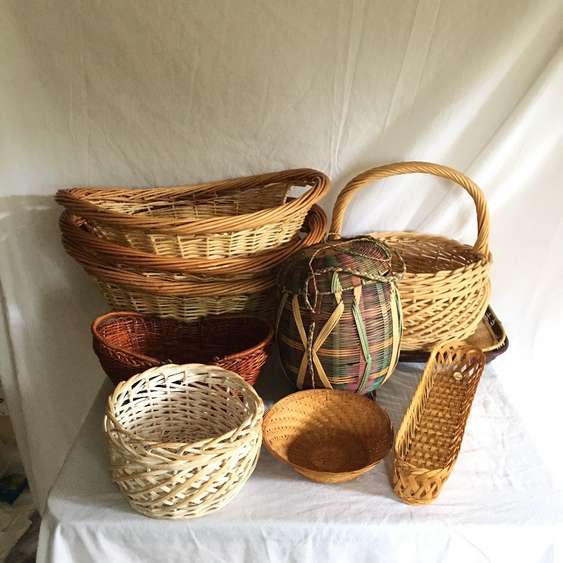 Nice selection of baskets in many shapes and sizes. Be ready for laundry or Easter with this array of baskets. Largest basket measures 17.5” x 23.5” x 11”.