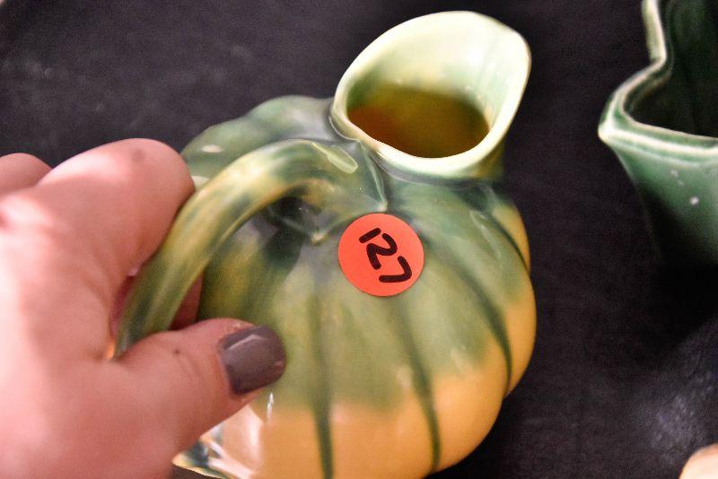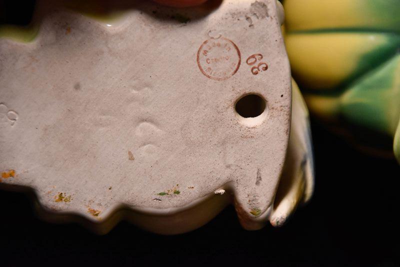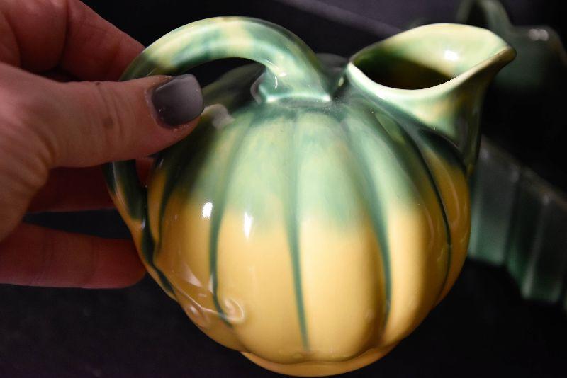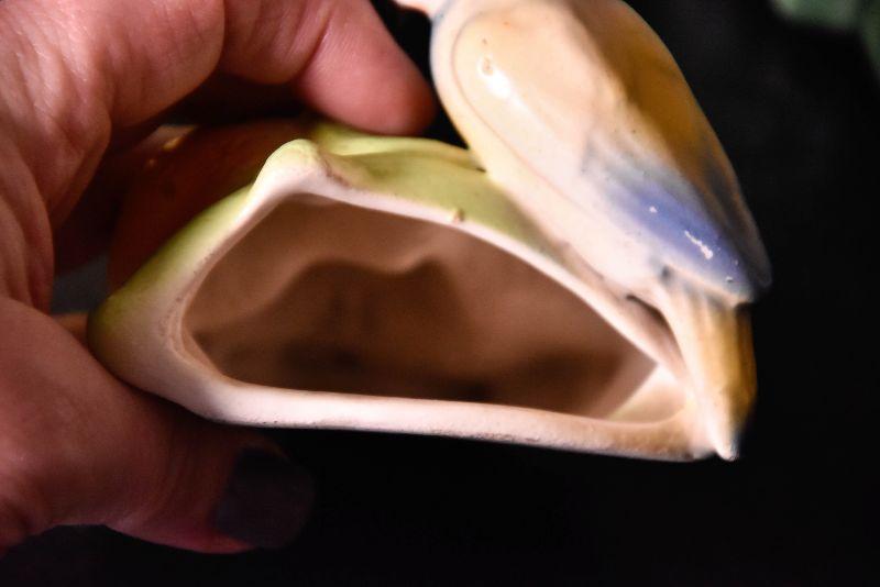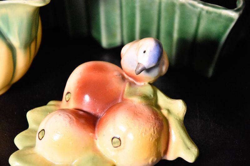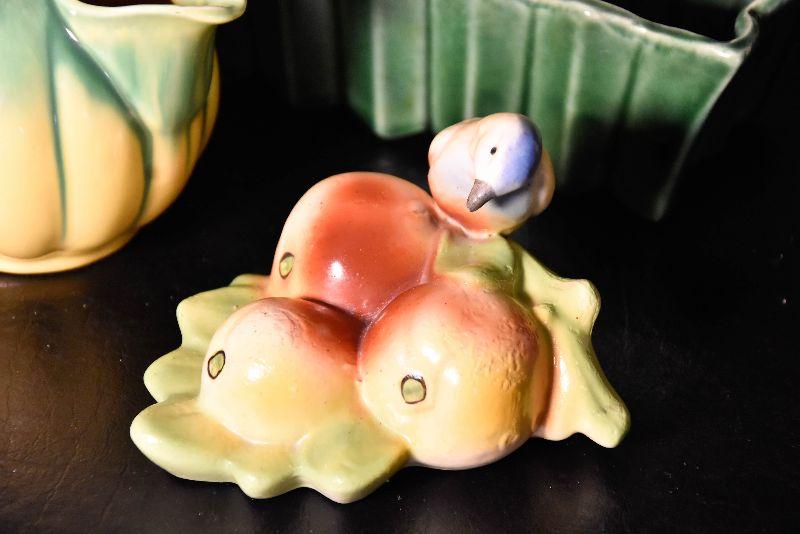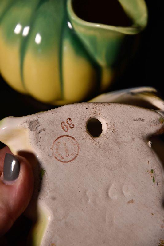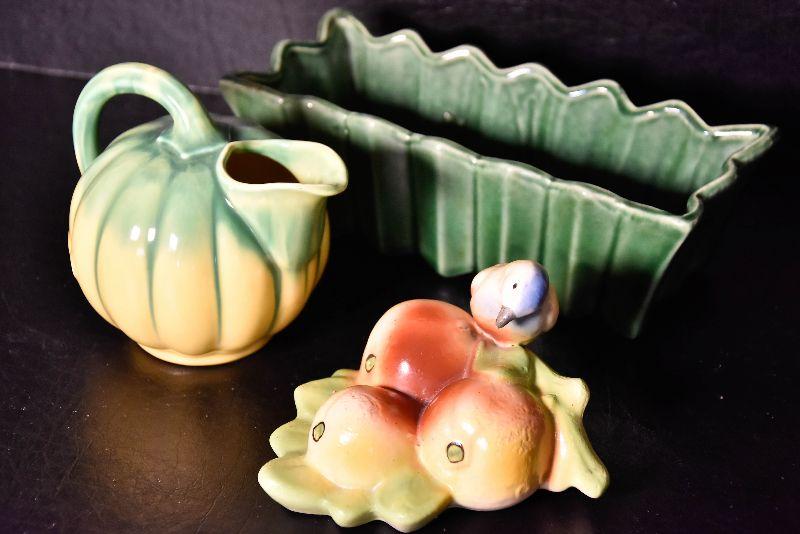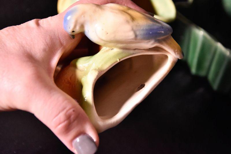 Cute bird wall pocket, small round pitcher, and loaf pan.