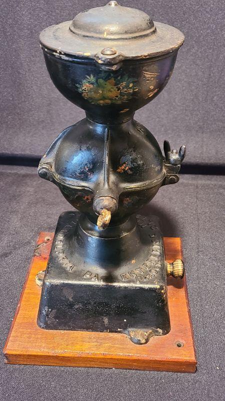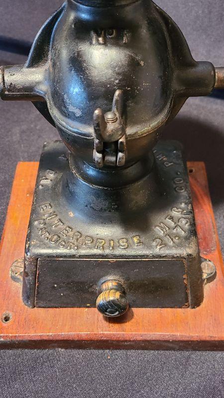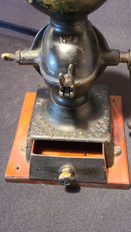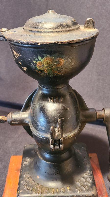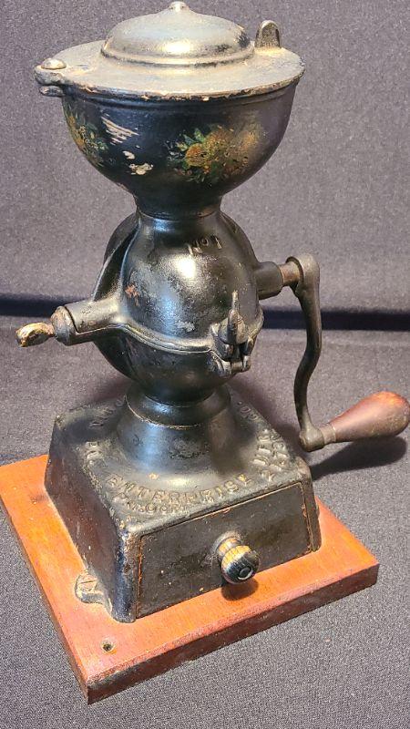 Enterprise No 1 Coffee Grinder Philadelphia Pat. Oct 21.73. Original paint and parts. Mounted on wood board. CLS Please see all pictures for content of the lot, condition of the lot, and measurements if taken. Pictures are the best representation of the items listed and items are untested unless indicated in description. Thank you for looking and have fun bidding!