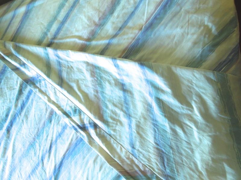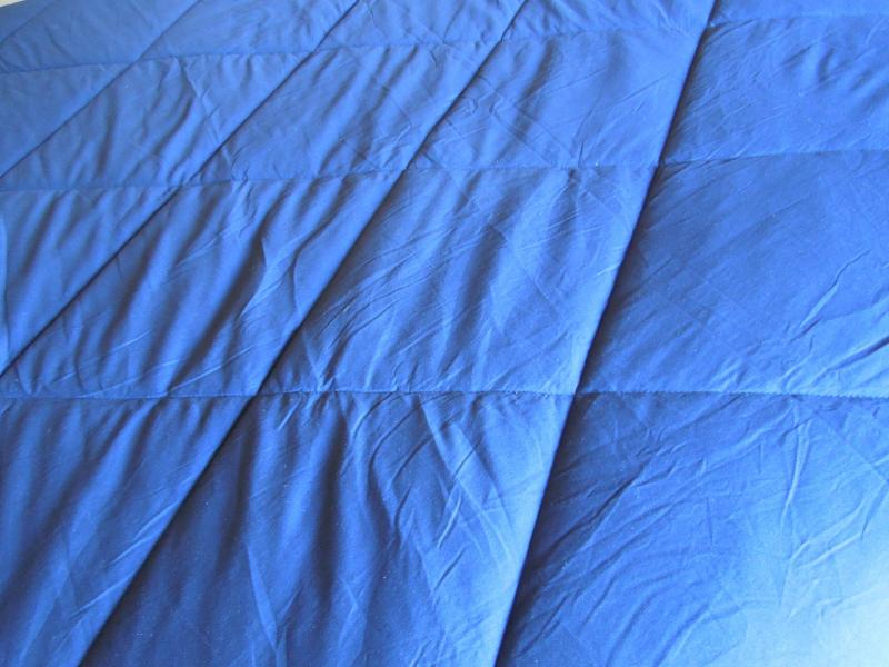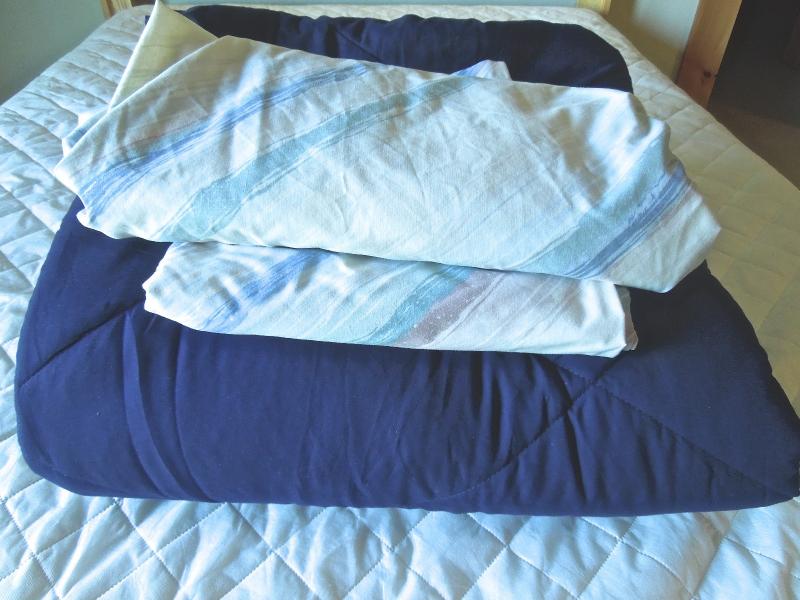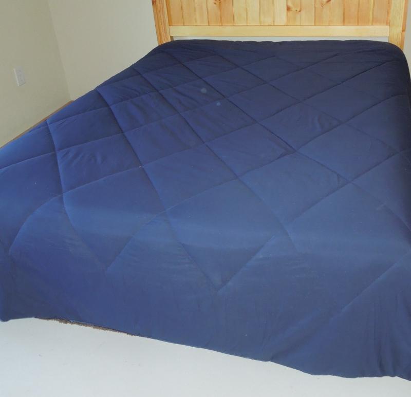 Quilted machine made poly comforter with coordinating cotton/poly full size sheets and pillow cases.