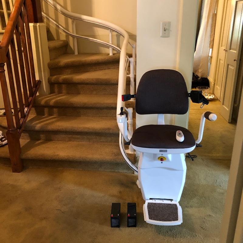 This stairlift has been tested and works great. Very simple to operate and a smooth ride. A great device that allows you to get upstairs safely and easily. Included in addition to the chair are two remote controls that were not tested due to dead batteries, rails, plug and two Duracell Ultra battery packs. The rails appear to be in sections so we would assume they can be customized for your stairs as well as easily dismantled.