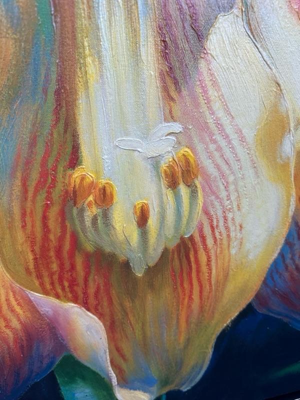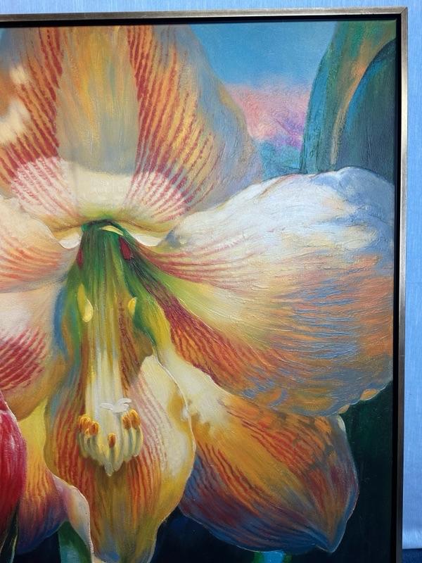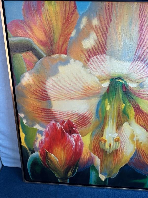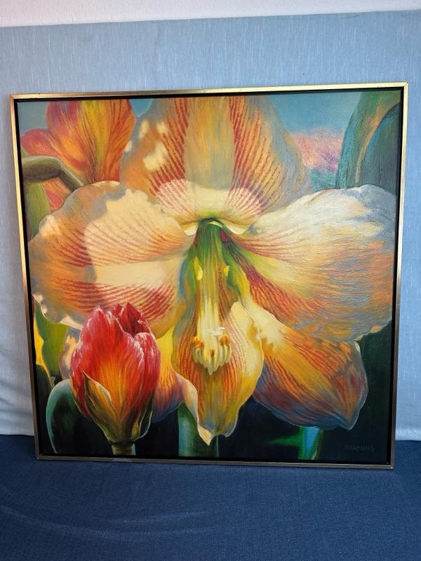 IKEA canvas artwork approximately 41” x 41” chip on gold paint at bottom portion of the frame
