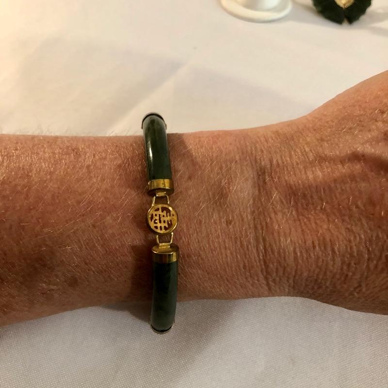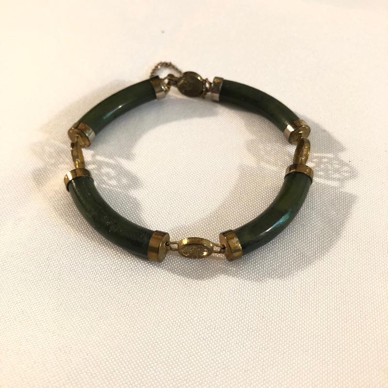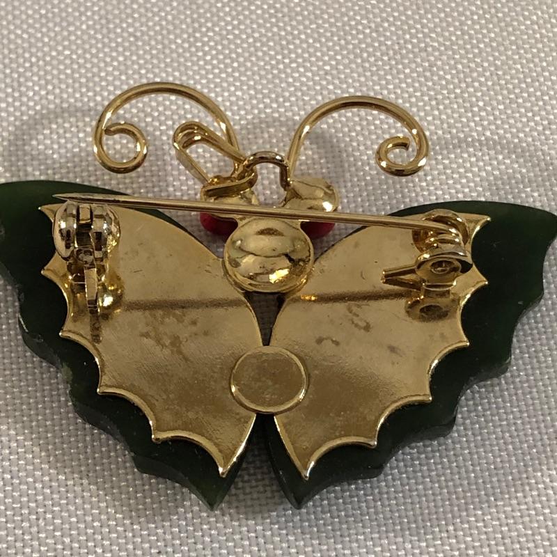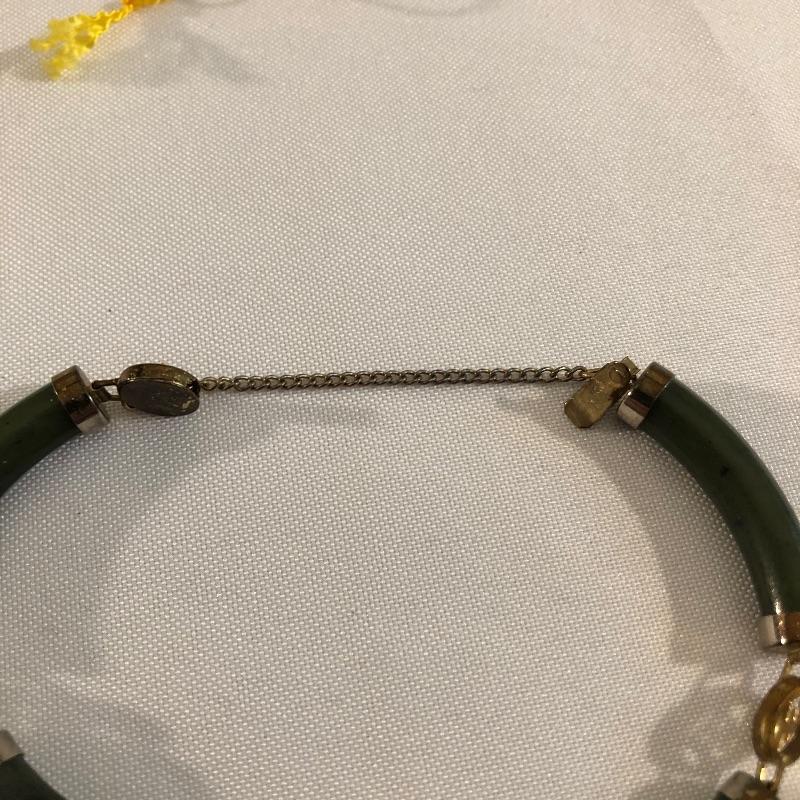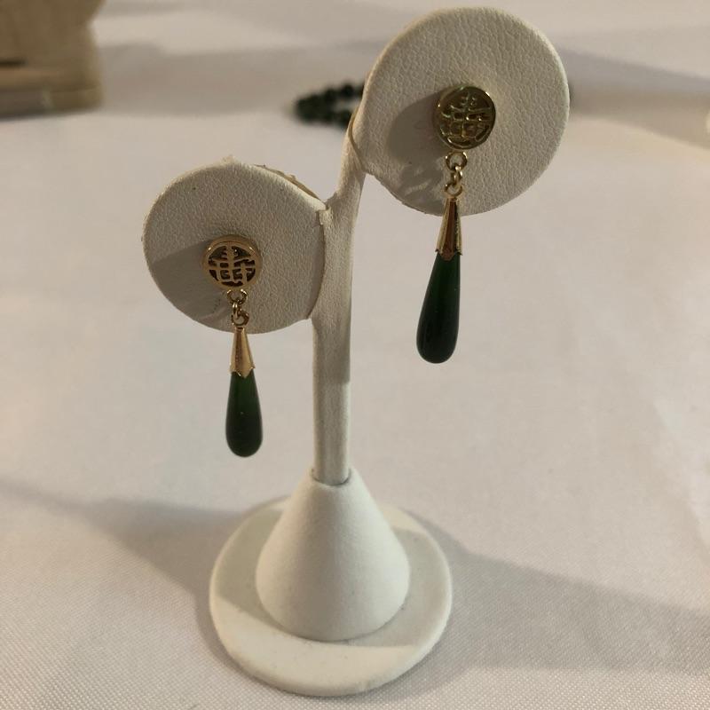This assortment of Jade jewelry is gorgeous. From the Jade Dynasty Collection we have a matching bracelet and post teardrop earrings and also a butterfly brooch. Both come with their original tag that tells you all about the pieces, see images. As for the rest of the pieces we cannot guarantee if they are real Jade, but either way there are many more stunning items in this lot that includes a beaded necklace and two pendant necklaces on chains, a gorgeous rose brooch, a bangle, a pair of post earrings, an additional pendant without chain and an Asian design satin jewelry box that measures 5.25” x 8”.