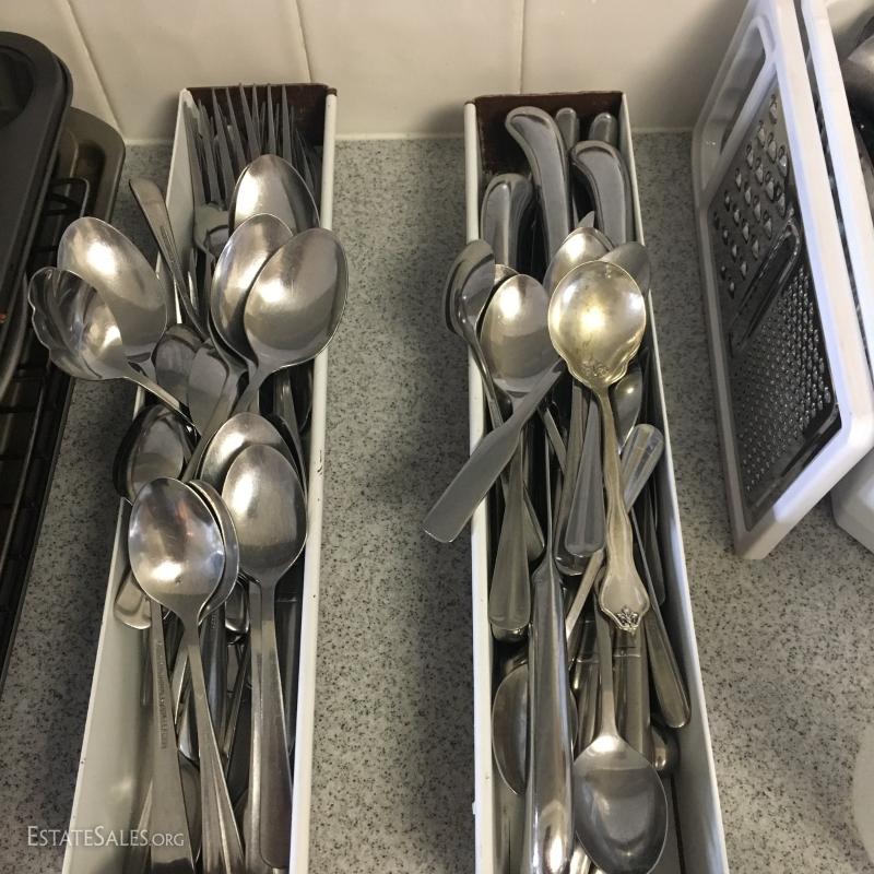 Misc Kitchen utensils: Farberware, Kitchen Aid, EKCO, set of International Stainless Silverware