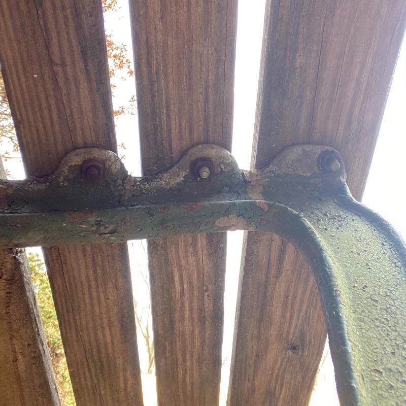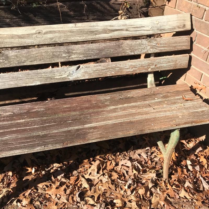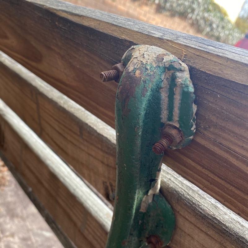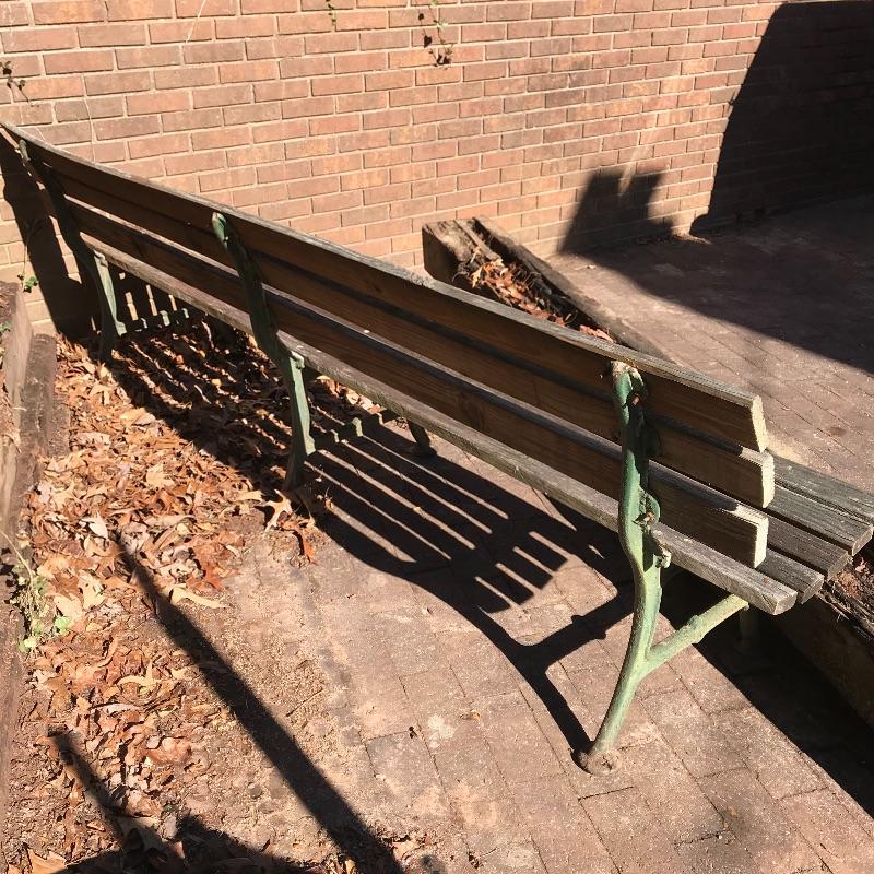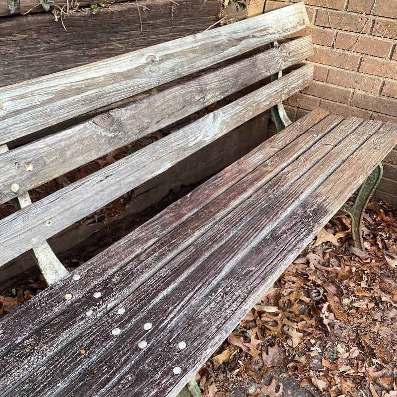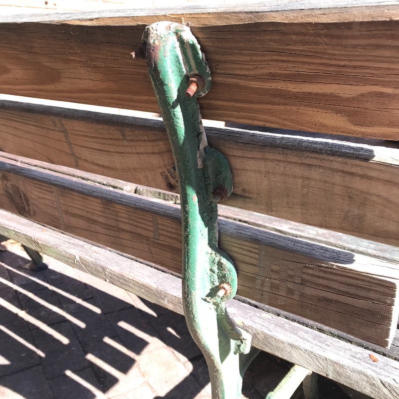 Stunningly large wooden and iron bench stamped Stafford MFG Chicago on its three iron legs. Wood is intact but would benefit from new wooden slats. Some weak pieces. Bench measures approximately 8’ x 21” x 30” with a seat height at 17”. Piece is extremely heavy and long. It does not come apart(has some rusted screws that you could try to unscrew if wanted)..bring help to load...easy access in driveway. Local pick up only.
