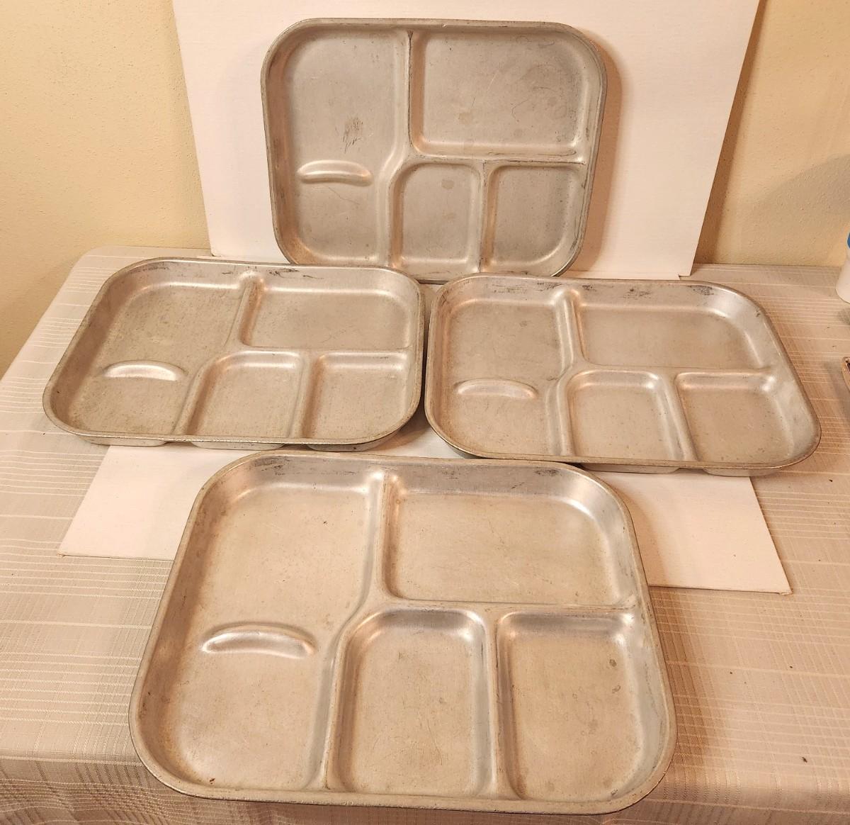 Lot #127 Lot of 4 Military/Mess Hall/Prison Aluminum Food Trays