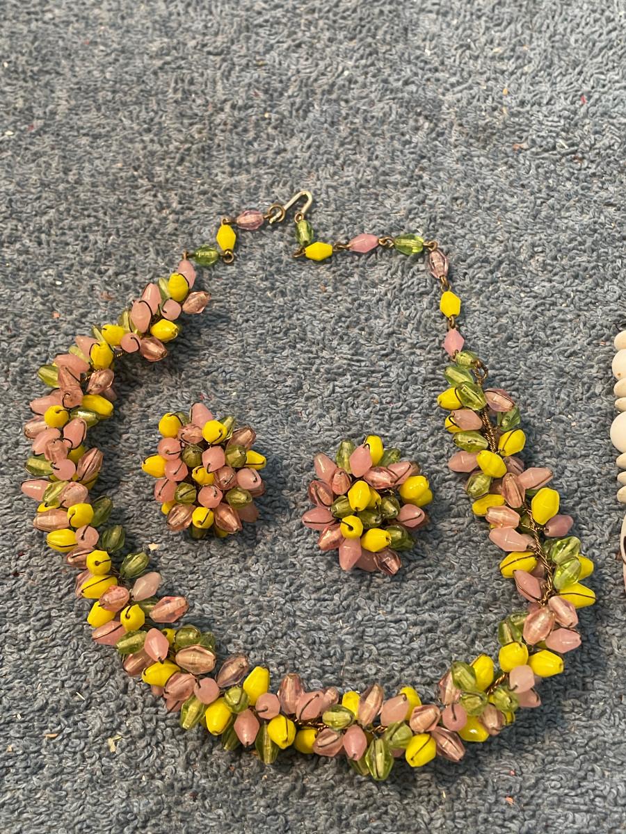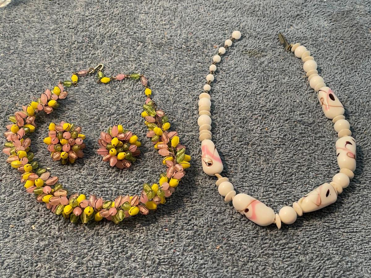 THIS IS LOVELY VINTAGE ART GLASS BEAD JEWELRY! ALL MARKED-JAPAN.. LIGHT WEAR.