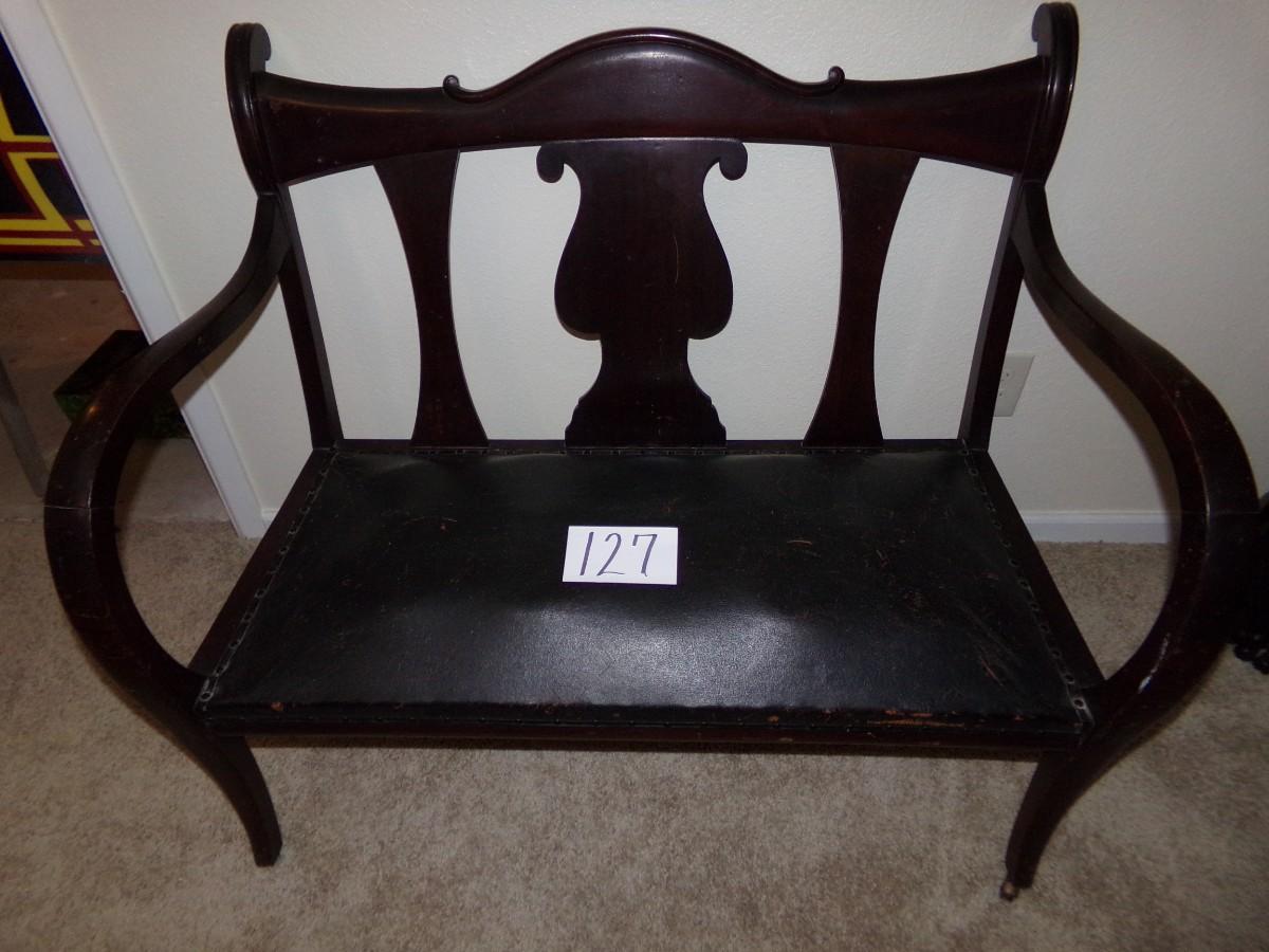 LOT 127 ANTIQUE MAHOGANY CARVED WOOD SETTEE