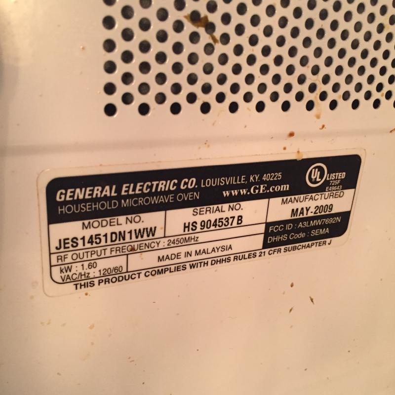 General Electric Microwave With Turntable. Microwave Measures 22” x 16” x 12”.