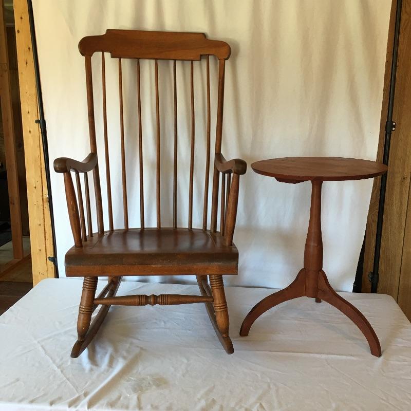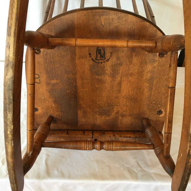 This classic Nichols and Stone spindle rocker is in excellent condition and is a great way to relax and unwind at the end of a long day. Also includes small table that has been glued, see pictures. Rocker measures 21” x 29” x 43” with a seat height of 15.5”.