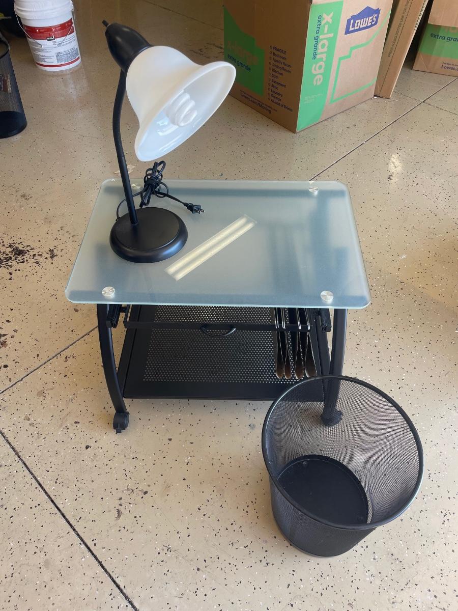 Lot 127. Office File Table with Lamp and Wastebasket