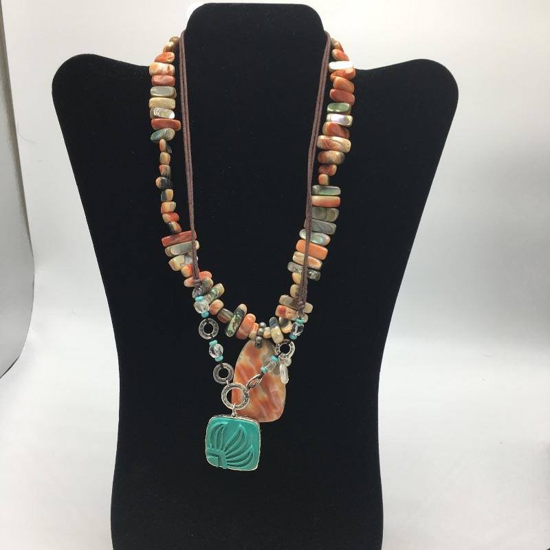 Silpada red California abalone shell necklace wit abalone bead accent and a lobster clasp that measures 16” with a 2” extender and a sterling Silver, howlite, pearl and glass necklace that measures 20”.