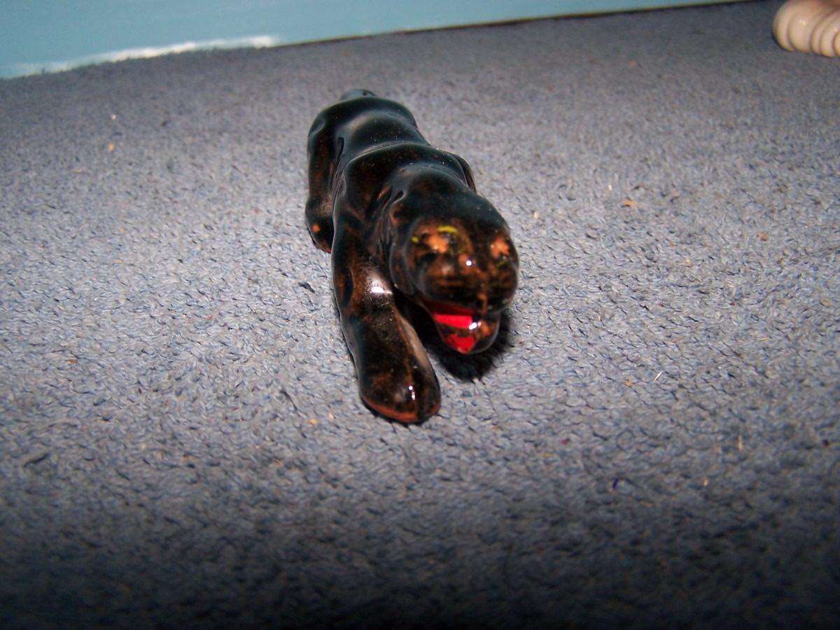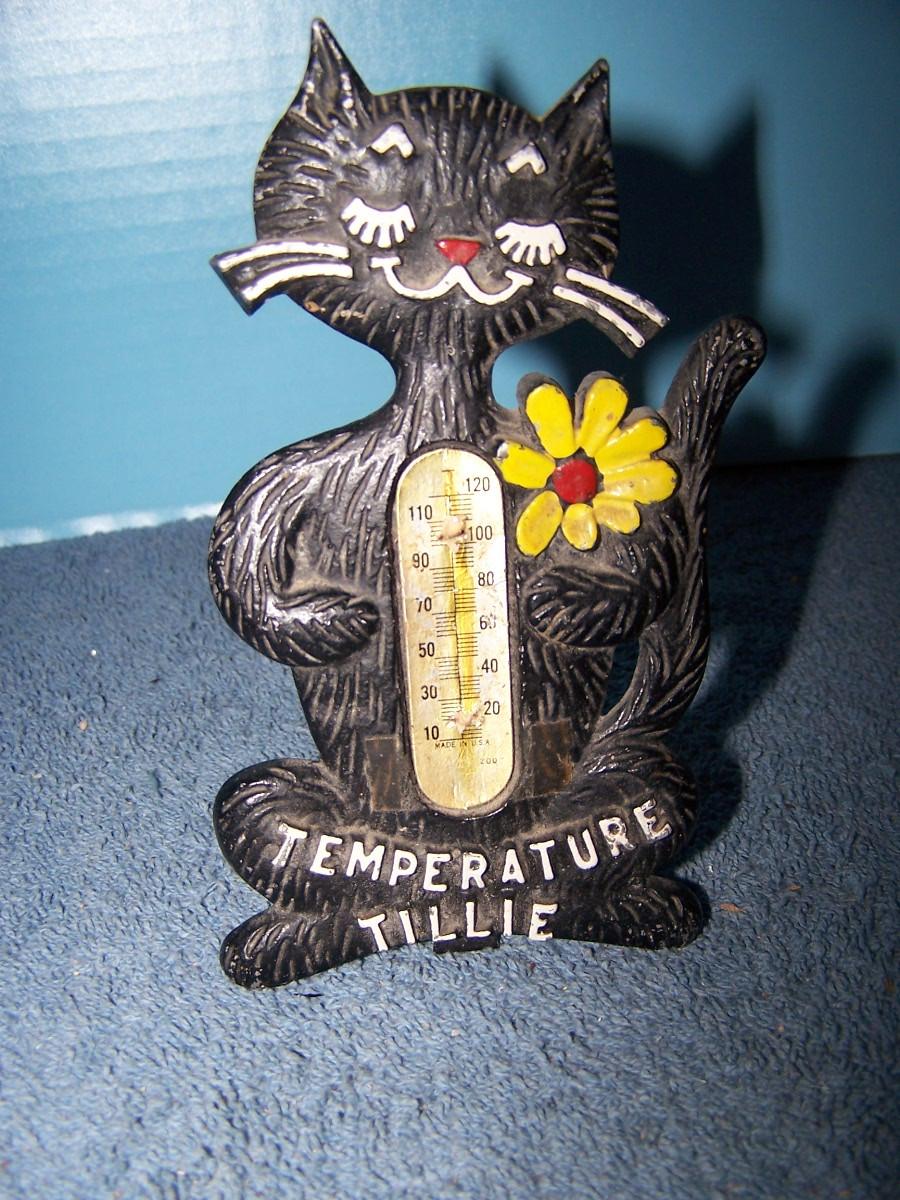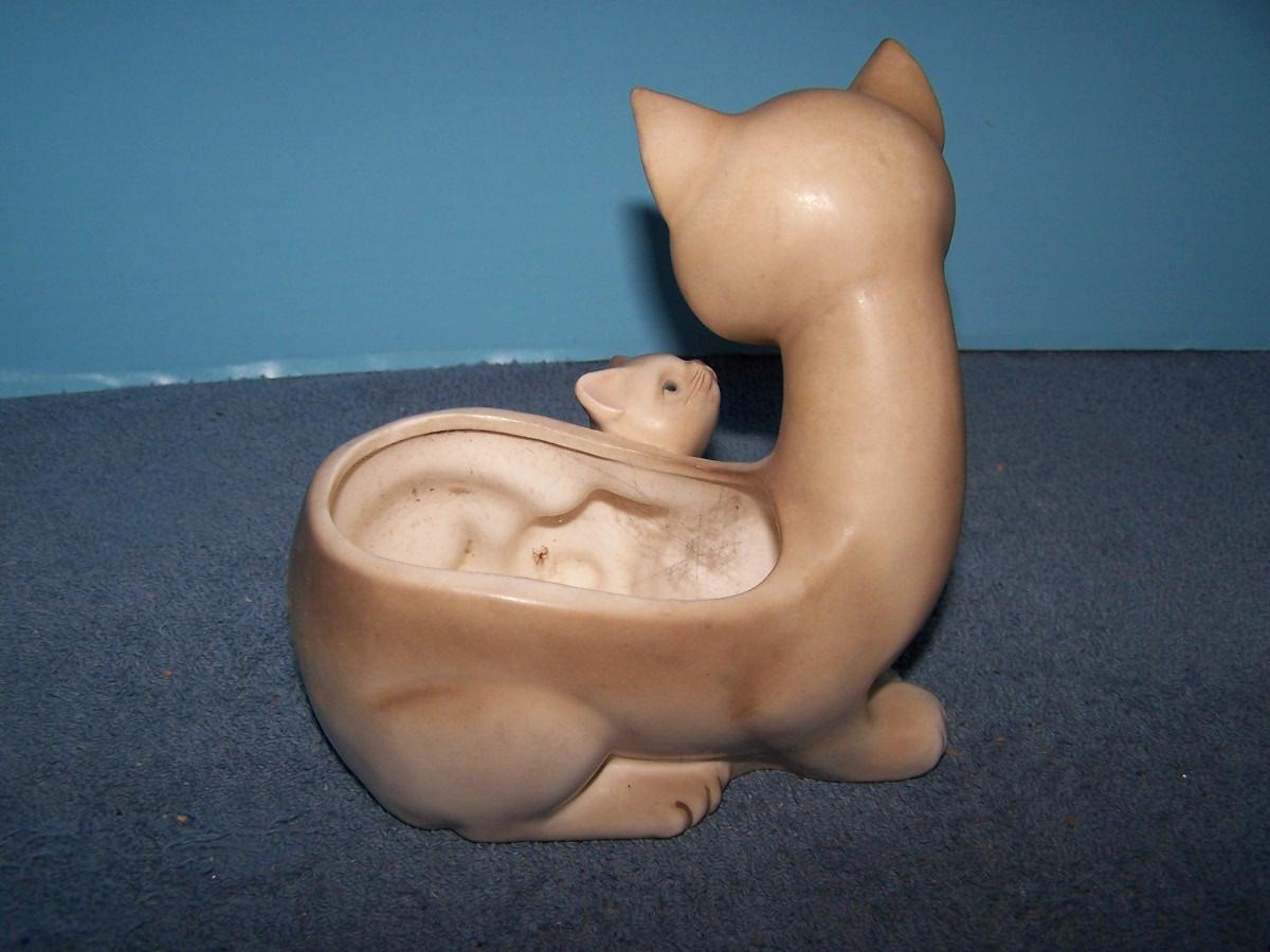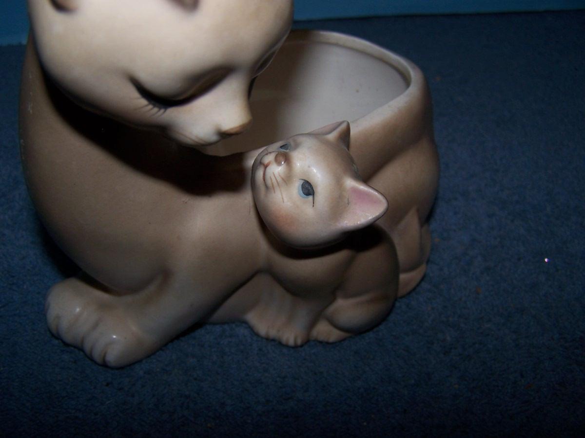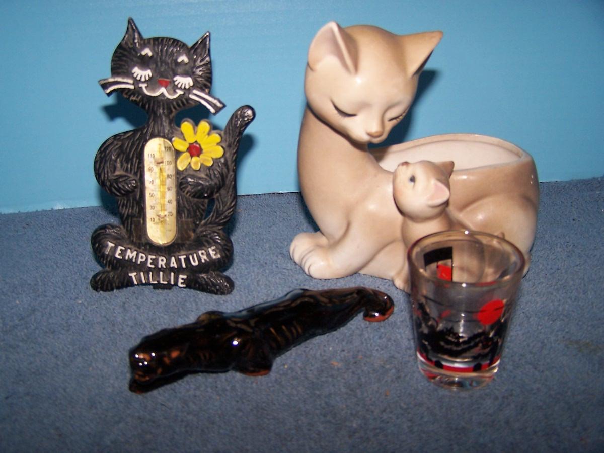 THESE ARE THE CAT'S MEOW!!! THE VINTAGE KITTIES ARE LEFTON MOMMA/KITTEN PLANTER, METAL THERMOMETER-NO THERMOMETER, SHOT GLASS- 2 1/4'' TALL, AND PANTHER.. LIGHT WEAR...