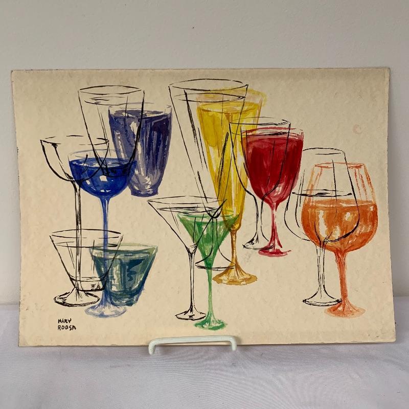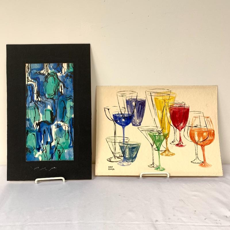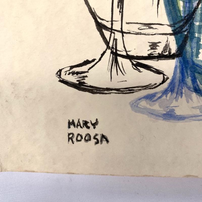 This lot includes two watercolors are signed by Mary Rosa. One is mated and the other is without matting. The mated piece measures about 16in x 10in. The non-mated piece measures about 15in x 11in.