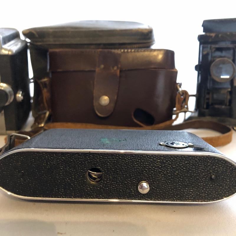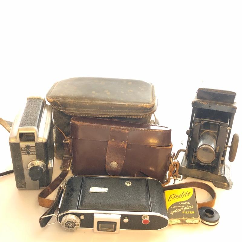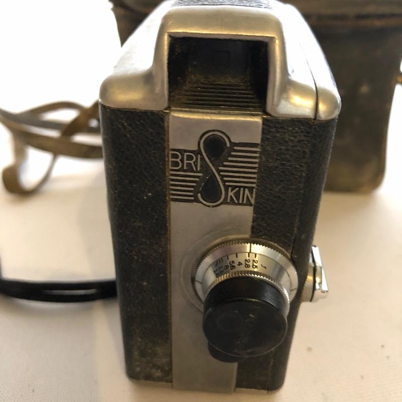 Super cool vintage film camera collection. The Briskin 8mm has the original exposure guide on the side along with the serial number. The black reel to reel looking projector is more of a conversation piece as it does not have any guys to and very possibly may be a model as it is very light weight. Shipping available.