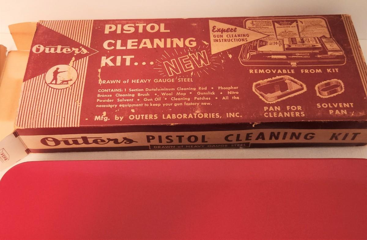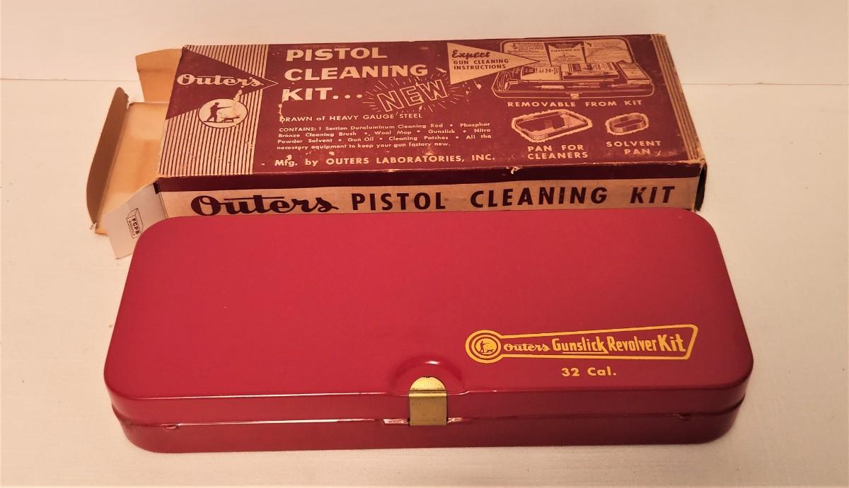Vintage Outers Gunslick pistol cleaning kit - original box and metal case. 1 1" x 4.5". Looks complete.