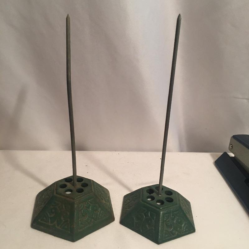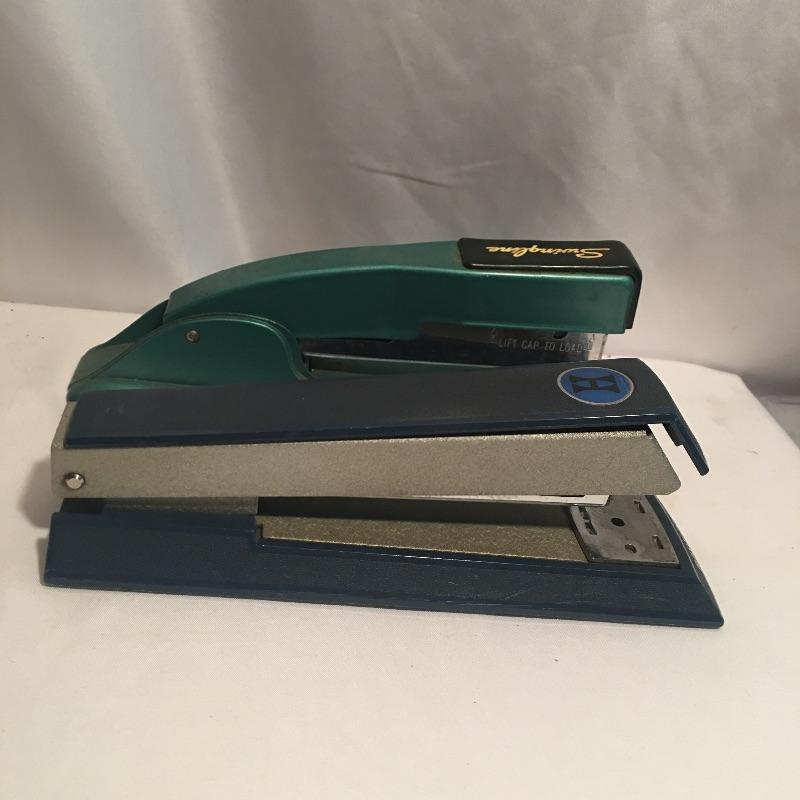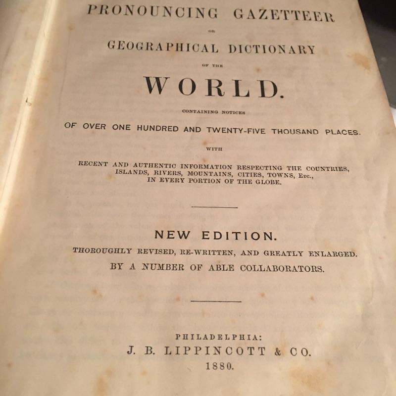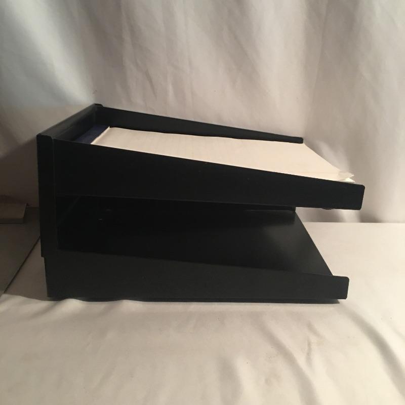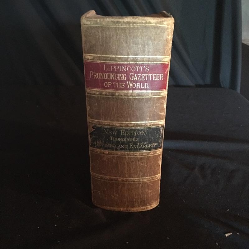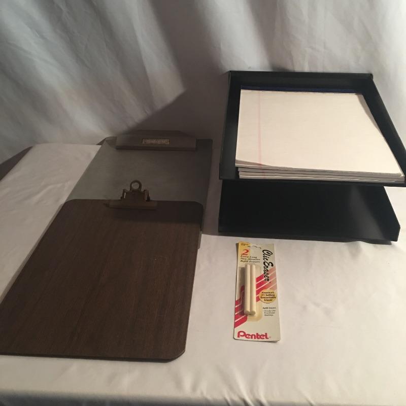 This lot has a great assortment of old and new office supplies that includes Lippincotts Pronouncing Gazetteer of the World 1880, two staplers Scotch tape dispenser, pair of clipboards, two letter openers, HP Deskjet 812C printer, brass stamp holder, Seagate 1 TB portable drive, paper tray two wastebaskets and more. Wastebasket has rusted bottom, see pictures. Printer powered on when tested.