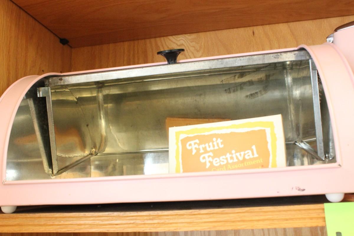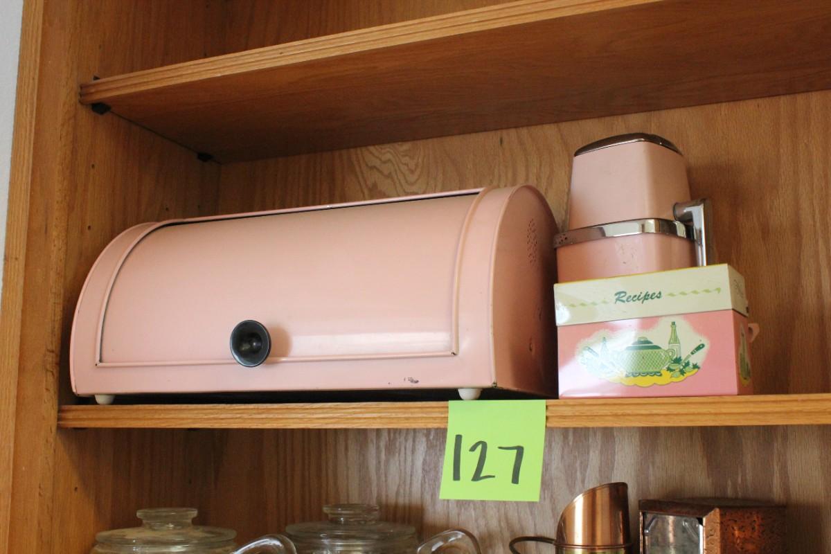 Lot 127 Vintage Pink Bread Box, Ice Maker & Recipe Box