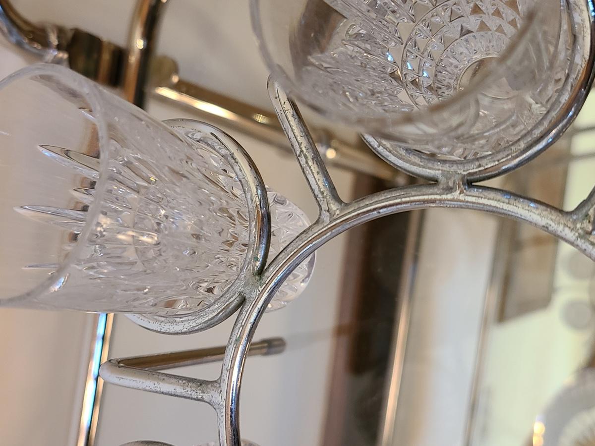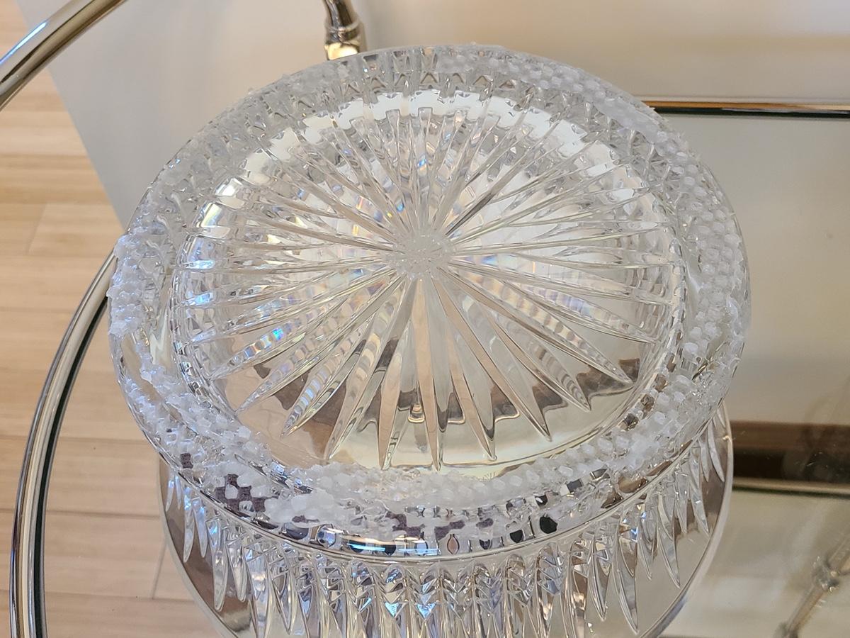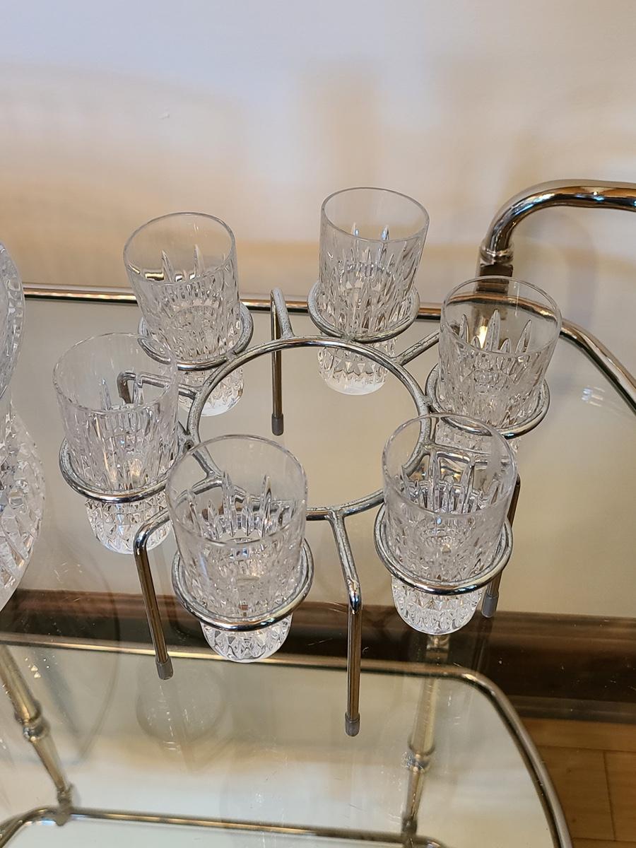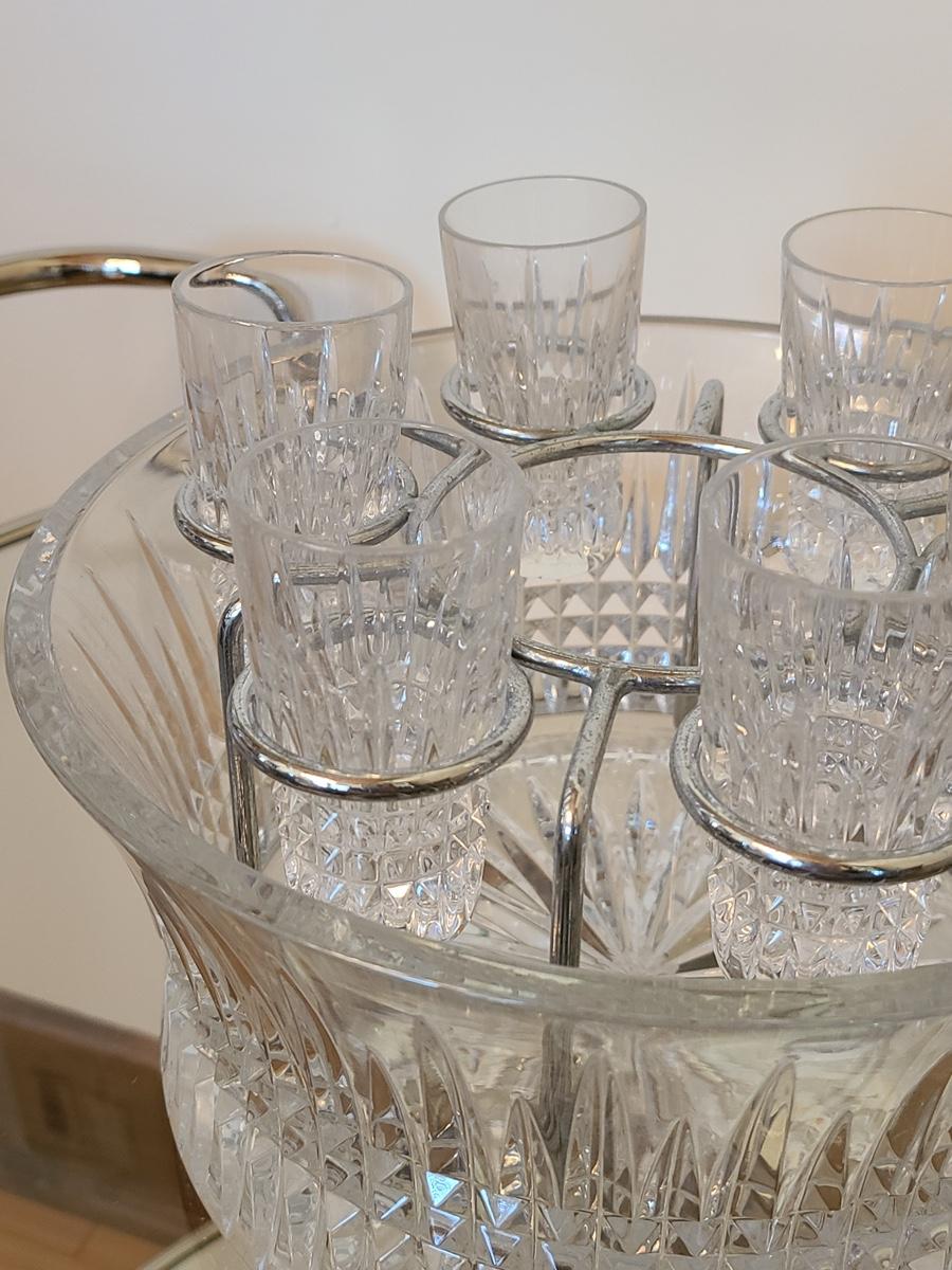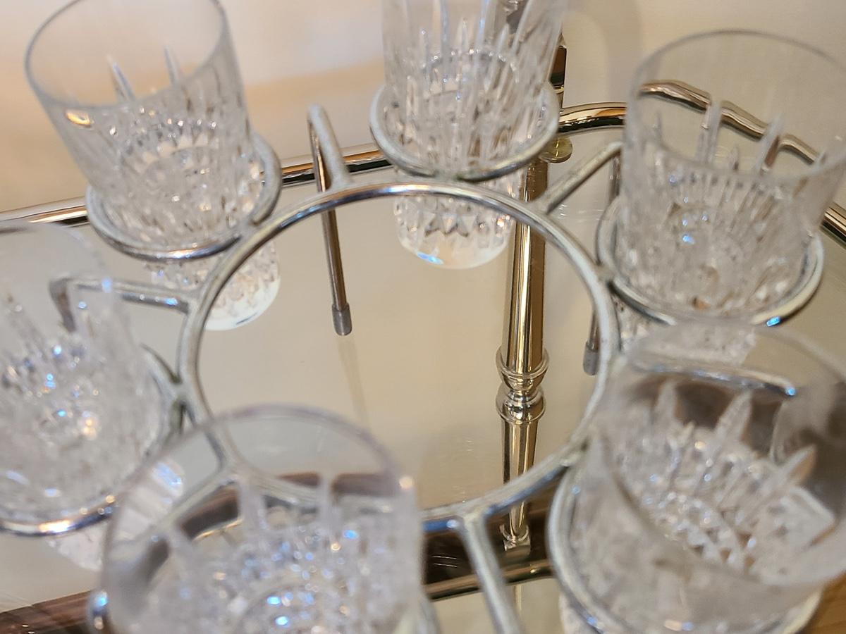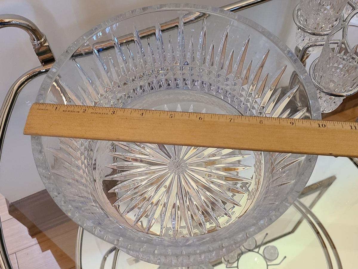 This is a highly sought after piece to add to your collection. This set includes the chill bowl, chrome designed shot glass stand (shows a little wear) and 6 shot glasses. Acid etched Waterford mark on base. Functional and Beautiful! Please see all pictures as they are the best representation of the items. The pictures show condition, measurements if taken, and what is included in the lot. Due to the large amount that we photograph and the time frame, we are not always able to take measurements. All items unless noted, are pre-owned and have been used. If you purchased furniture, you must bring help. We do not allow one person to carry large furniture out on their own. Bring help, tools and a truck for the safety of our clients homes, and your personal safety. Company policy. Thank you.
