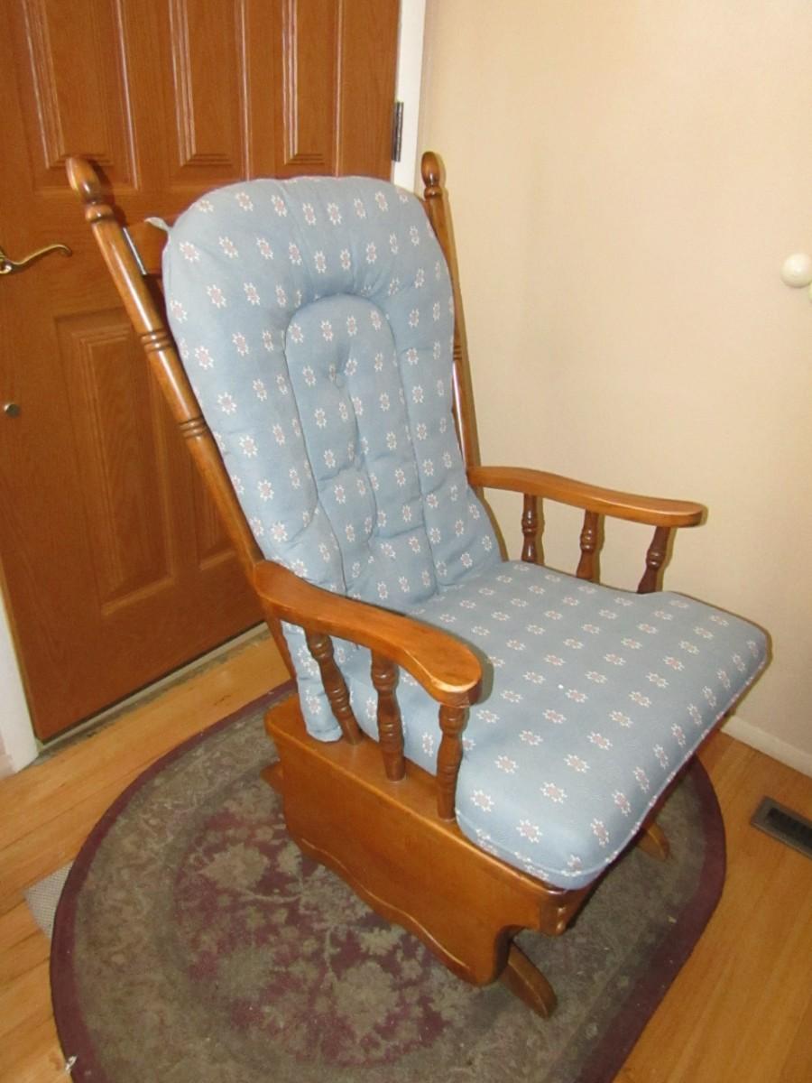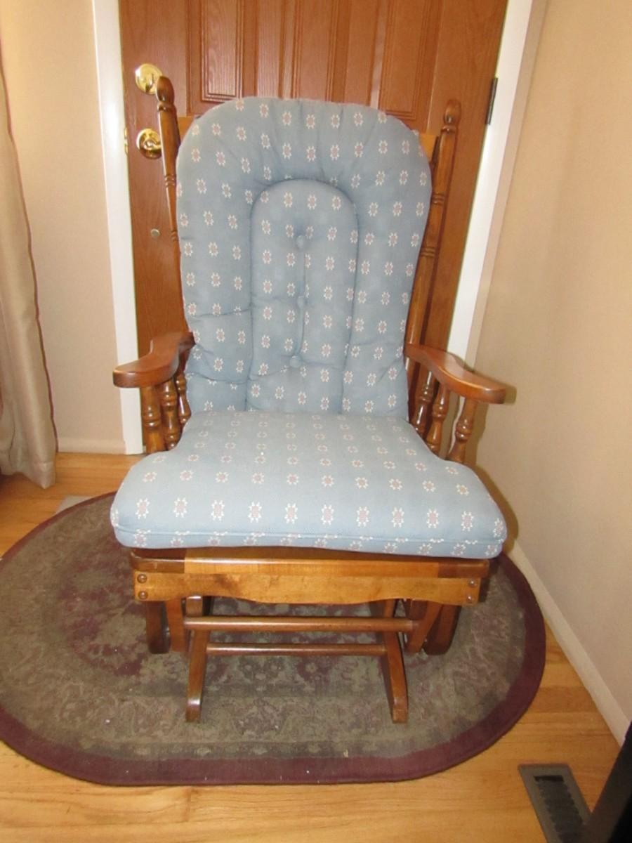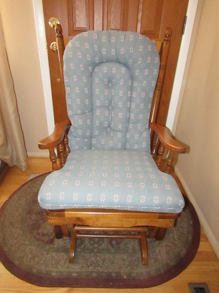 LOT 127 WOODEN FRAMED GLIDER WITH CUSHIONS