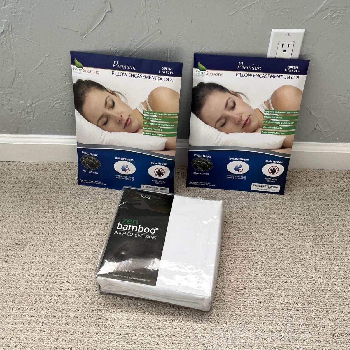 Lot 128 2 queen pillow cases - 1 king ruffled bed skirt