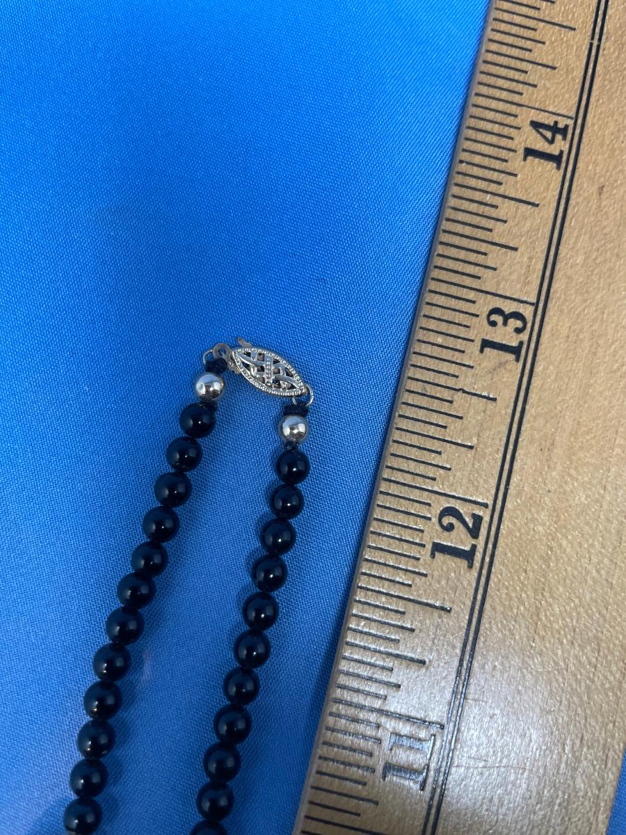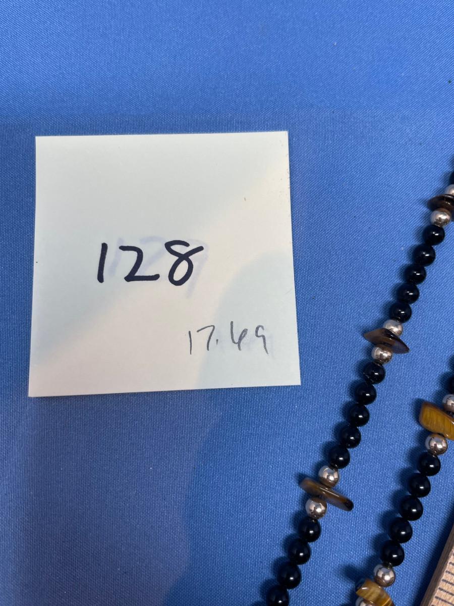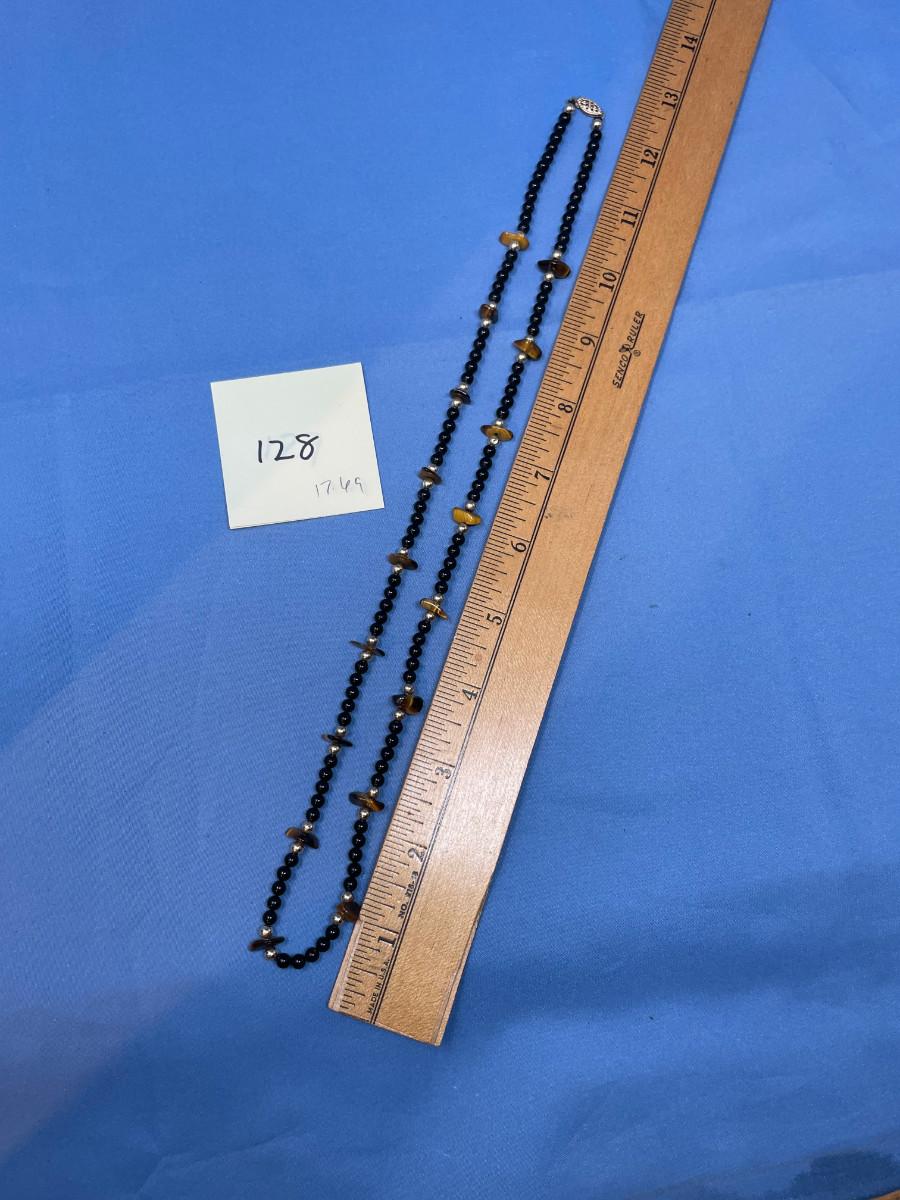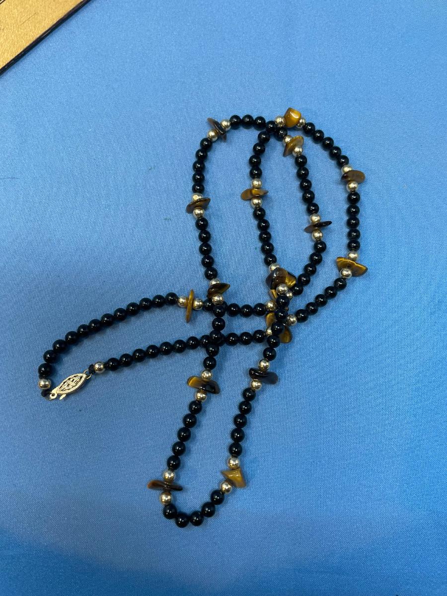 lot 128 14K gold Tiger Eye & Onyx necklace
