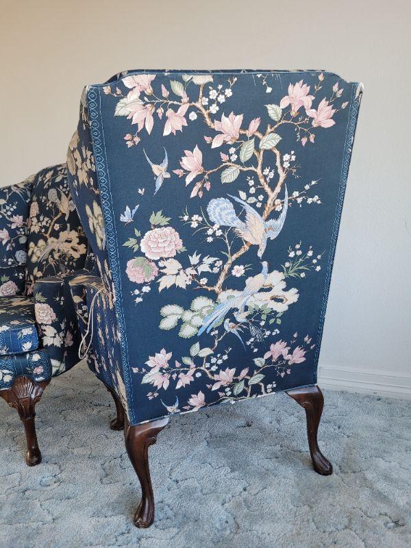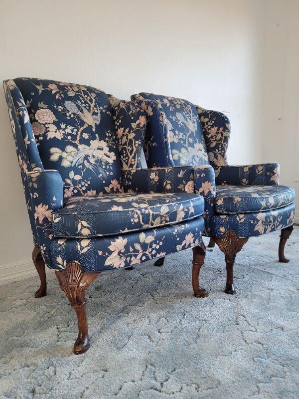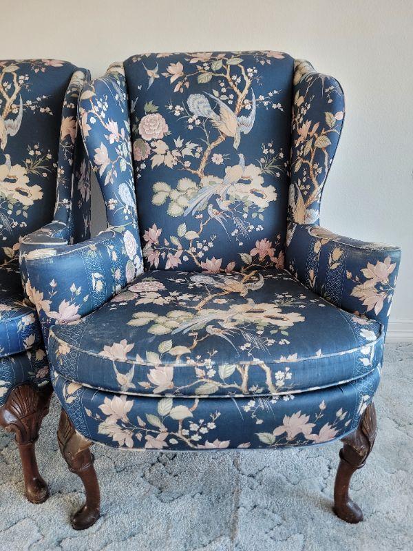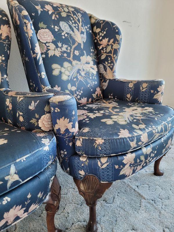 Lot #128: Vintage Pair of Queen Anne Highback Chairs by SHERRIL Furniture RESTORATION PROJECT" x 31" x 31"