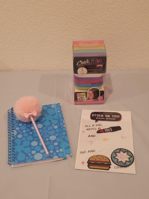 Lot 128: New Journal Notebook, Pen, Stick On Patches & Hair Chalk