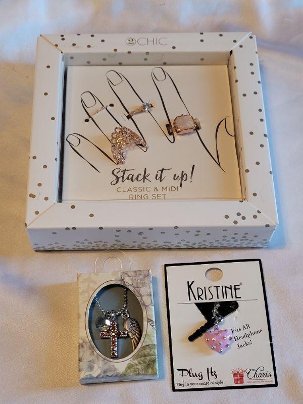 Lot 127: New Stackable Gold Rings, Necklace and Cell phone Charm