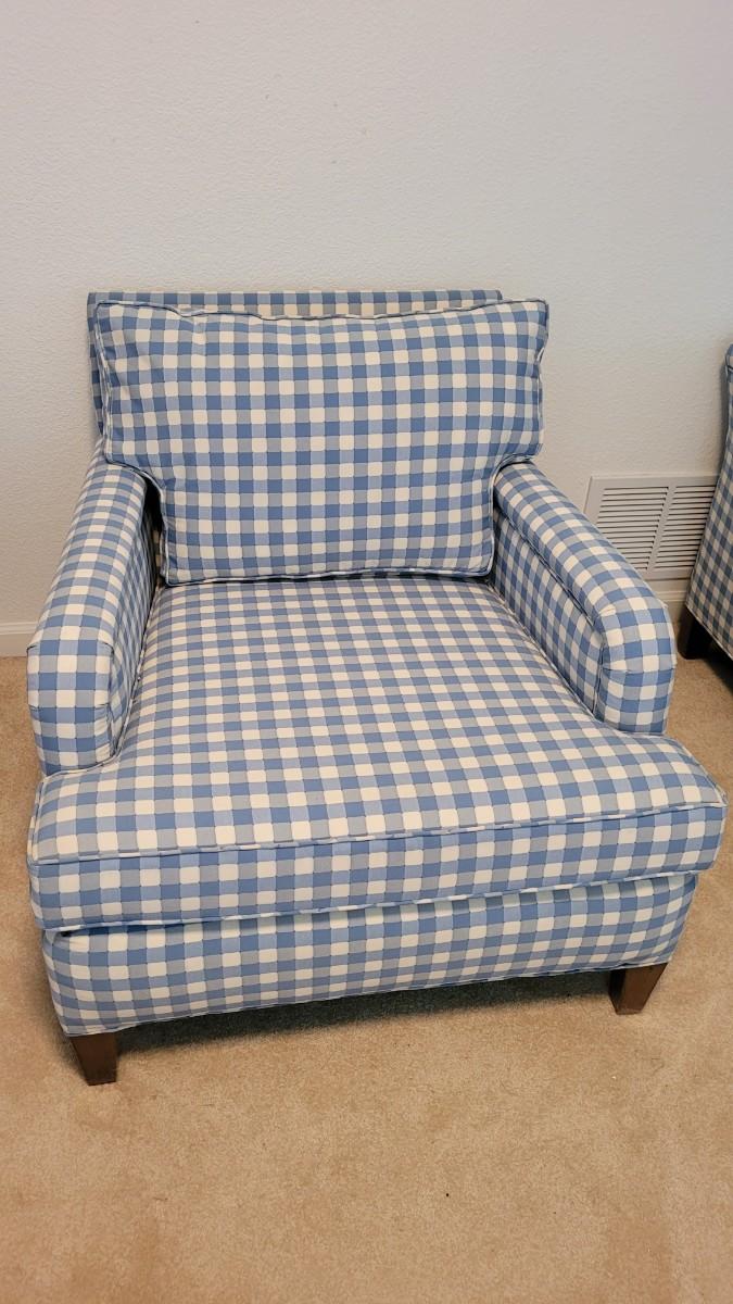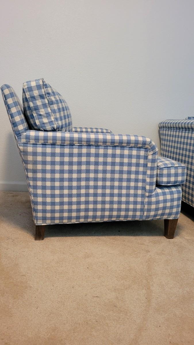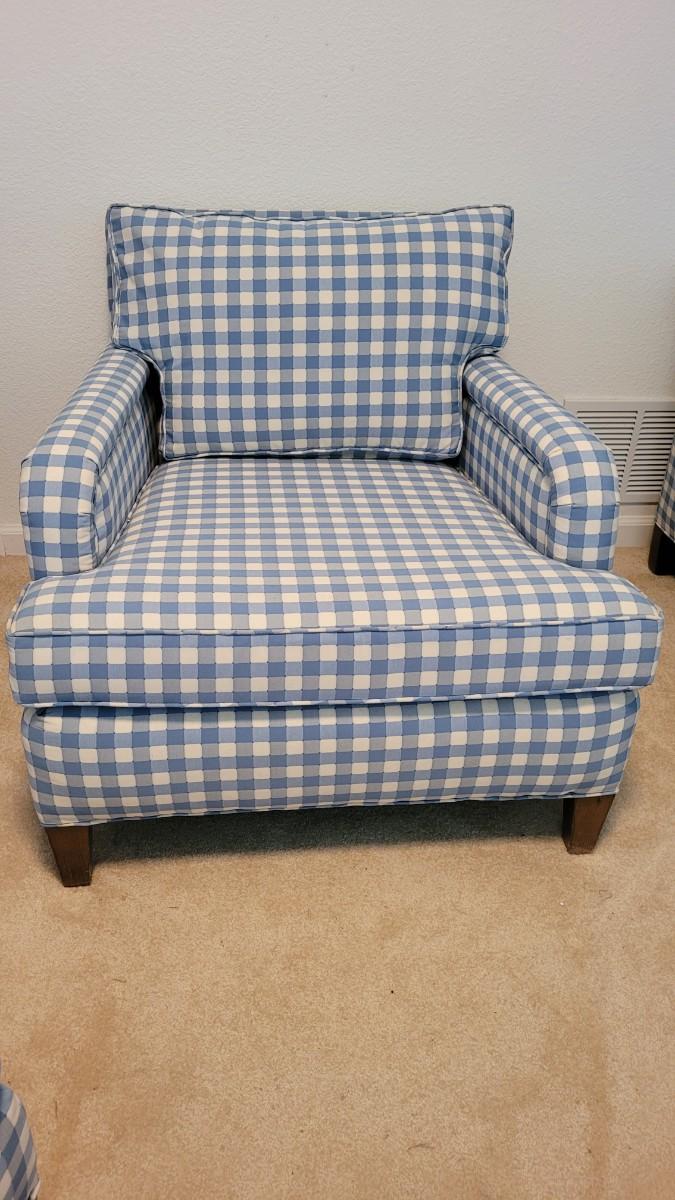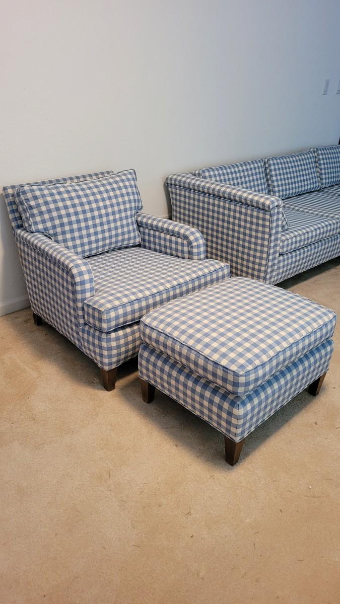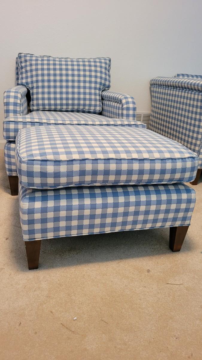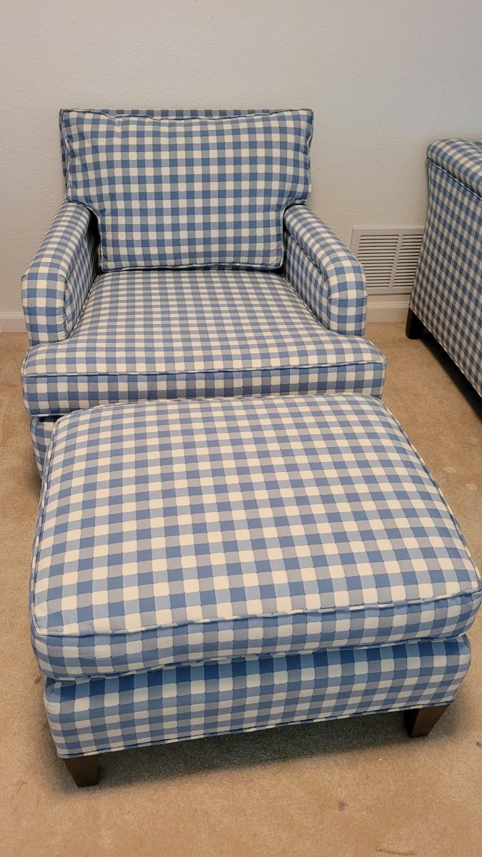 Lot 128: Vintage Chair with Ottoman Blue Checker