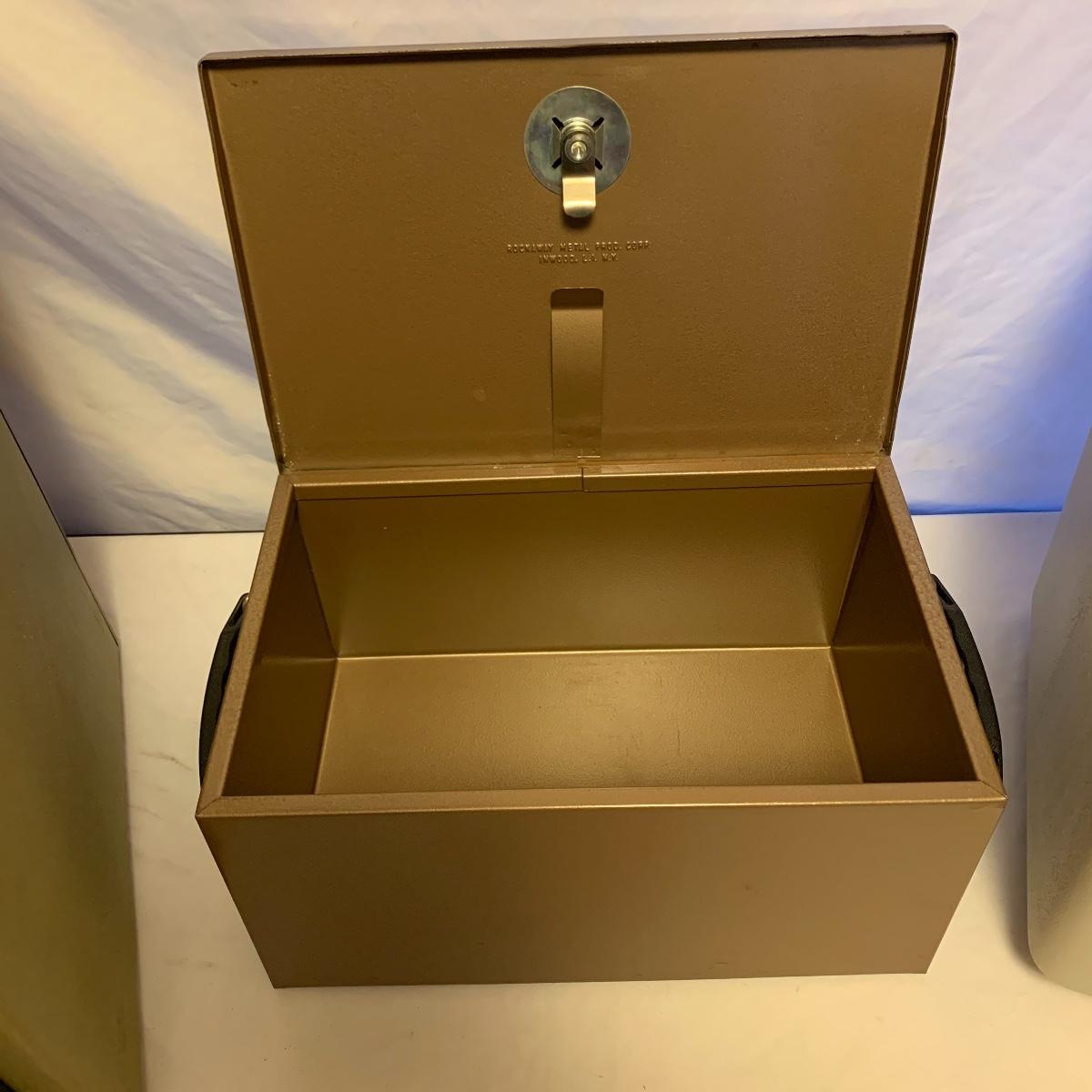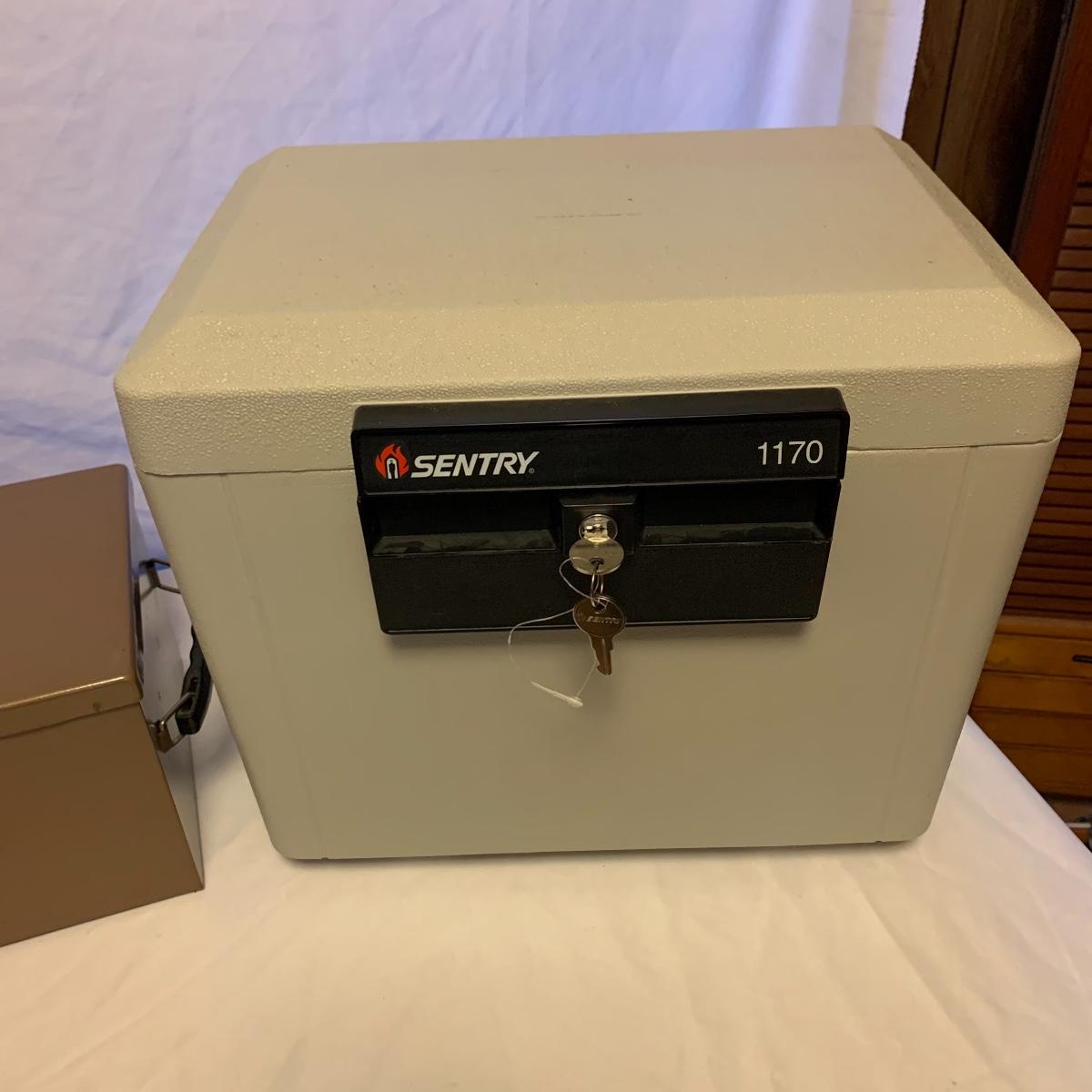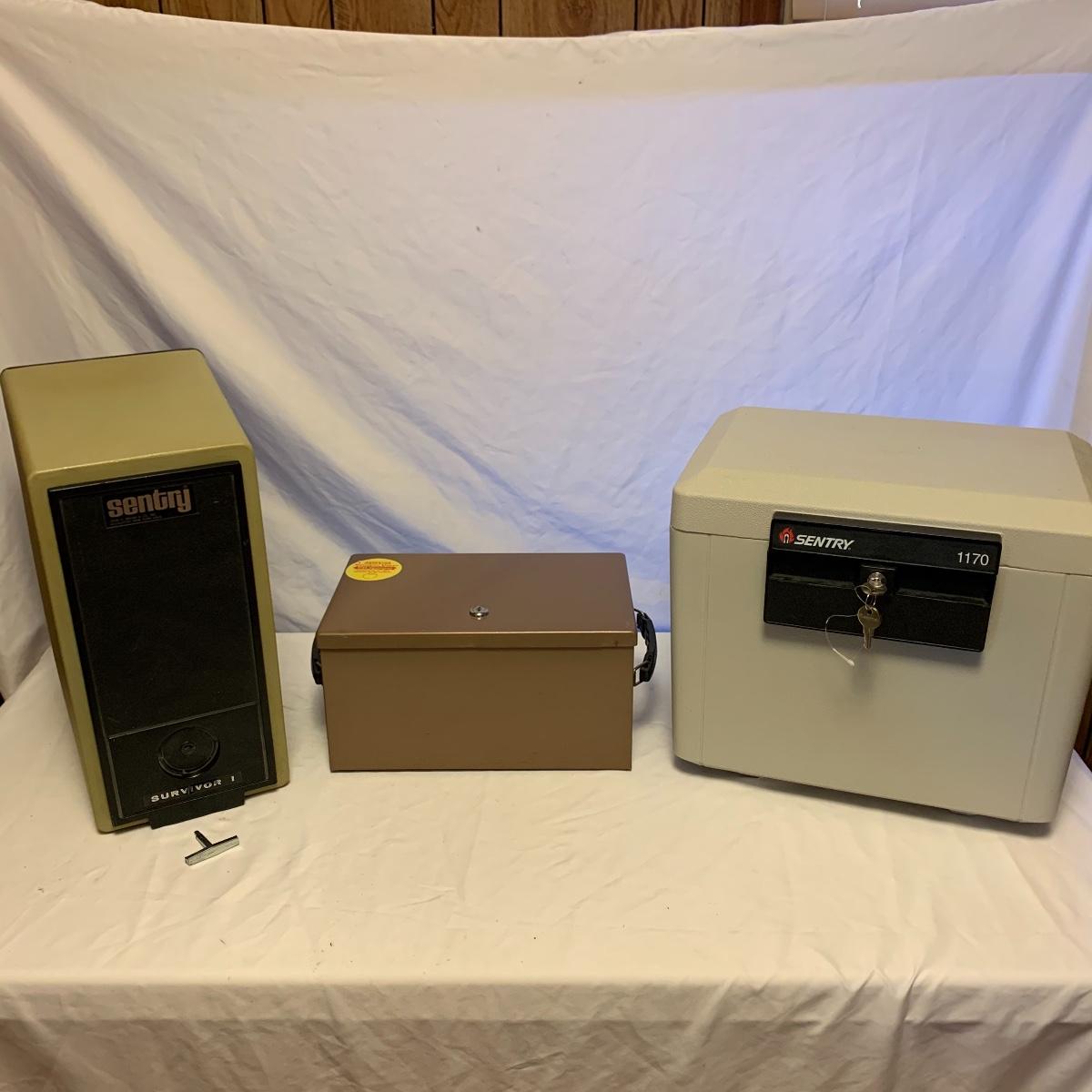 Protect those valuables in these strong boxes. The first (left in pic) is a Sentry Survivor 1 and comes with a key. This box measures 15” tall X 8” wide X 13” deep. The middle box is a fire resistant security chest and does not have a key. It measures 13” wide X 7” tall X 8” deep. The third in this group is a Sentry fire proof safe box. It come with two keys and measures 14” tall X 15” Wide X 11” deep. All three of these boxes are heavy. Local pickup