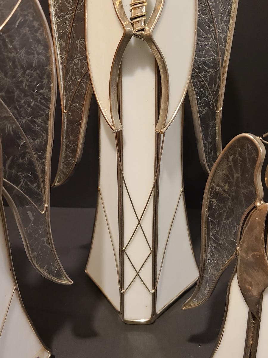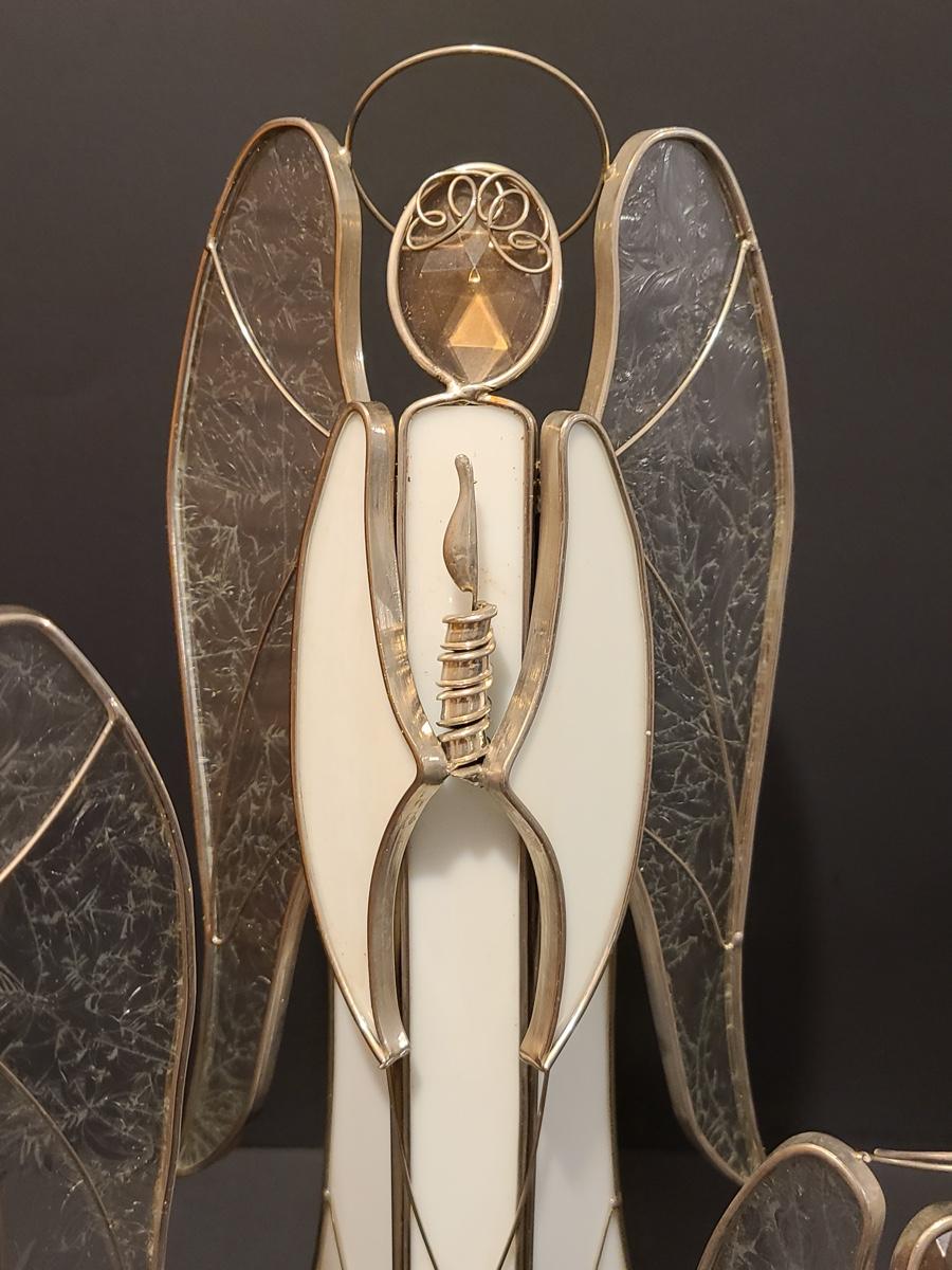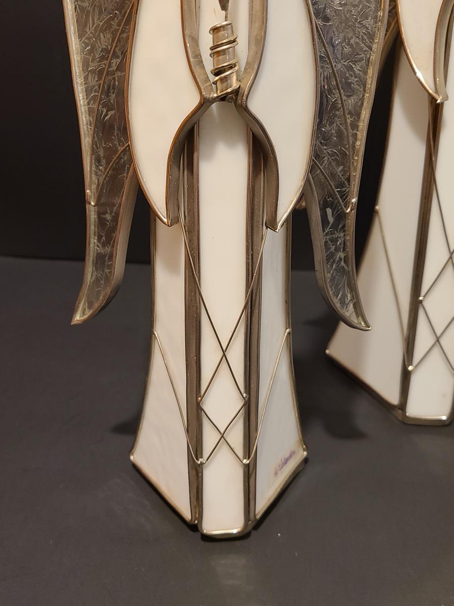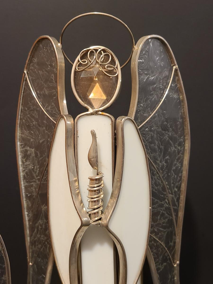 Lovely set of stained glass angels that can set in front of votive candles. There is one with small crack, but it is in the back of the piece and can't be seen because the arm overlays it. Please see all pictures. The pictures show condition, measurements if taken, and what is included in the lot. Due to the large amount that we photograph and the time frame, we are not always able to take measurements. All items unless noted, are pre-owned and have been used. If you purchased furniture, you must bring help. We do not allow one person to carry large furniture out on their own. Bring help, tools and a truck for the safety of our client’s homes, and your personal safety. Company policy. Thank you