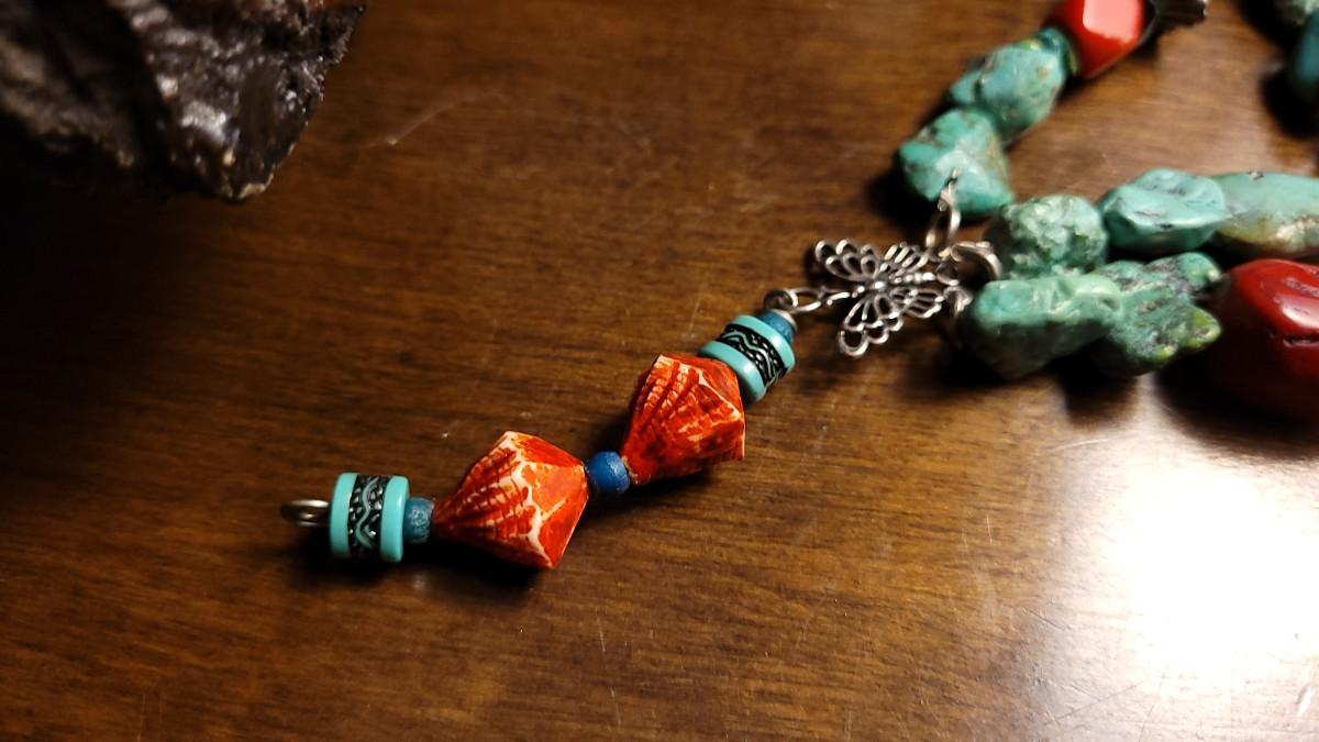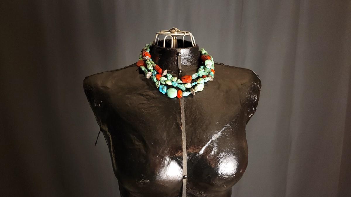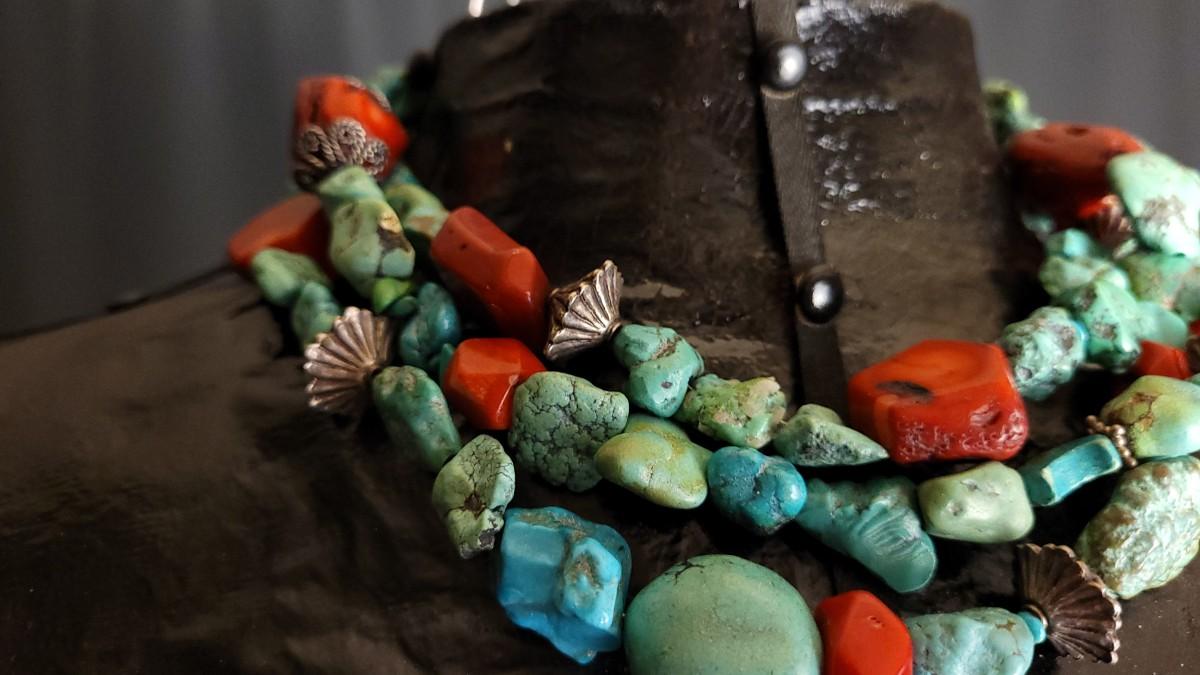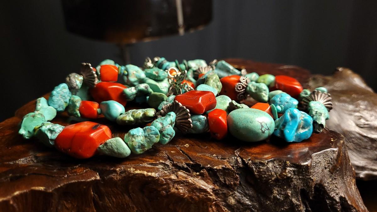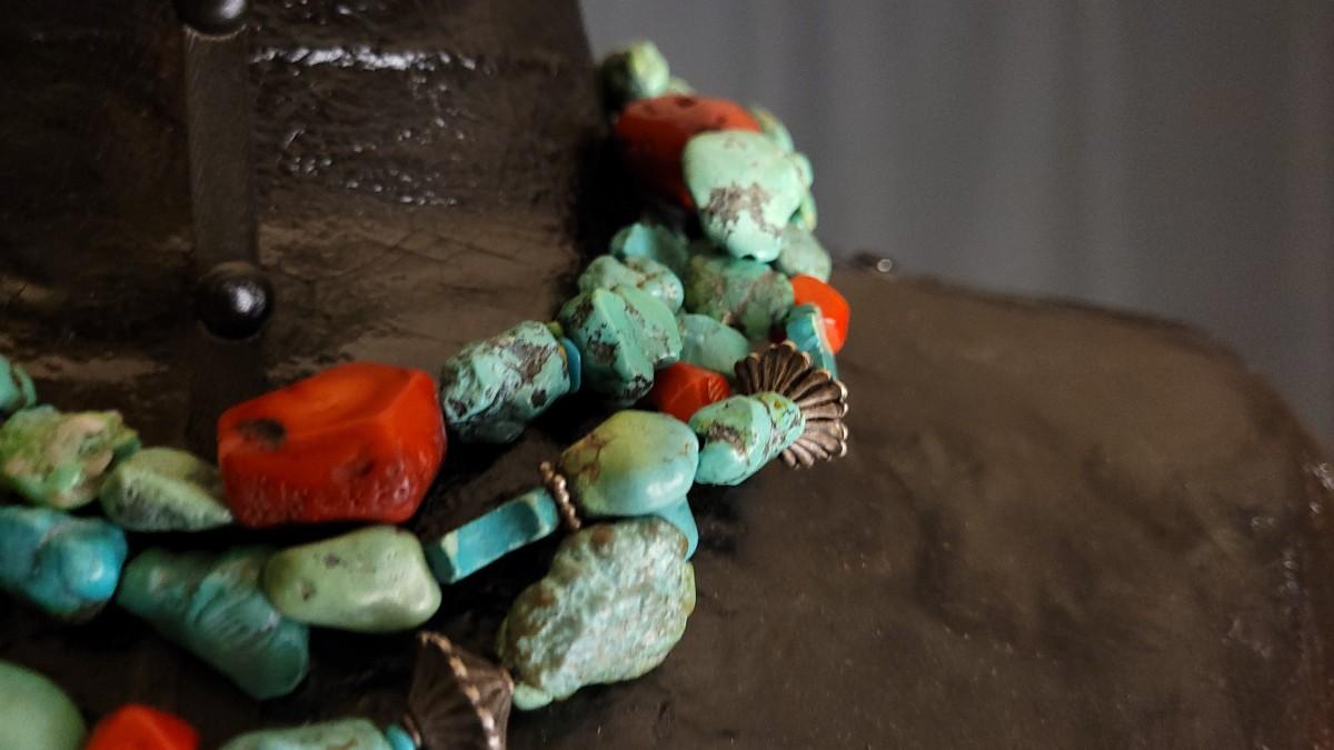 Lot 128: Vintage Raw Turqoiuse and Red Coral Triple Strand Necklace