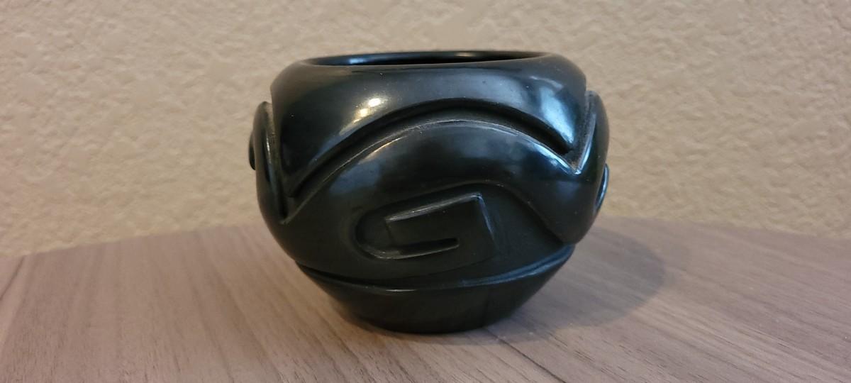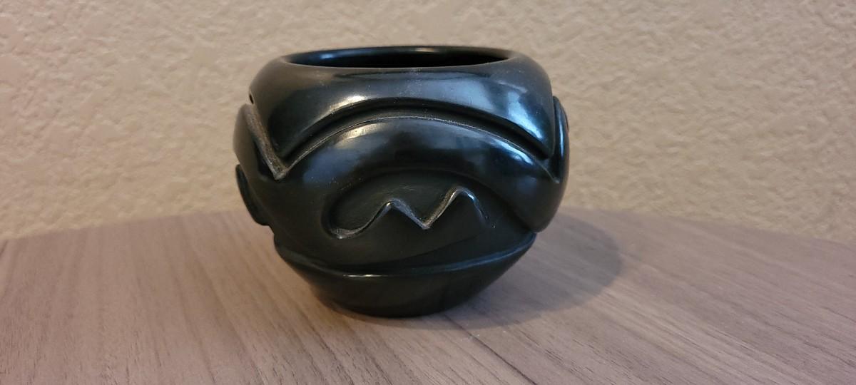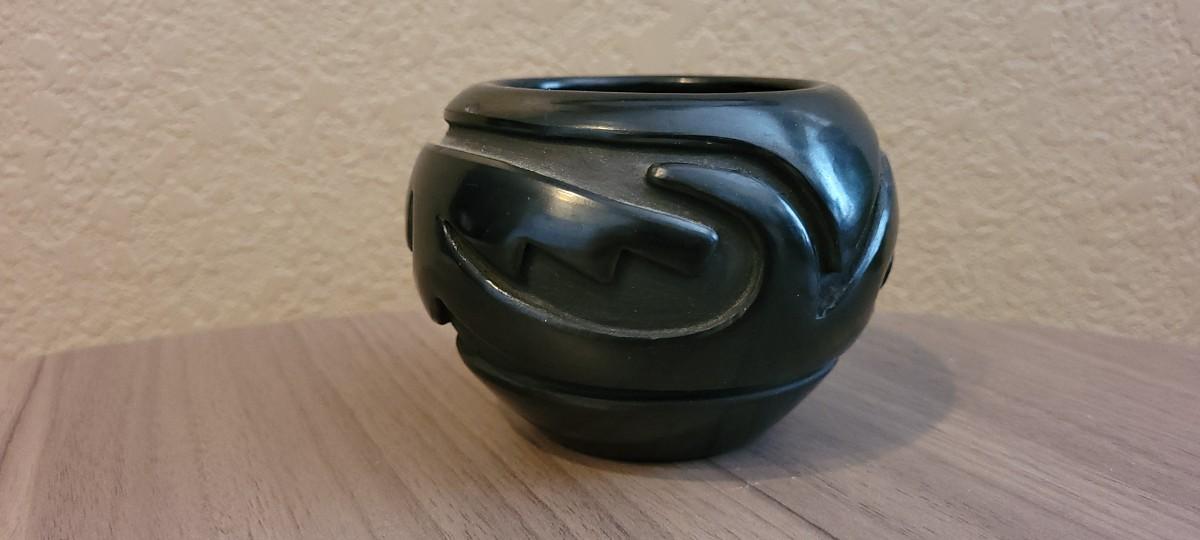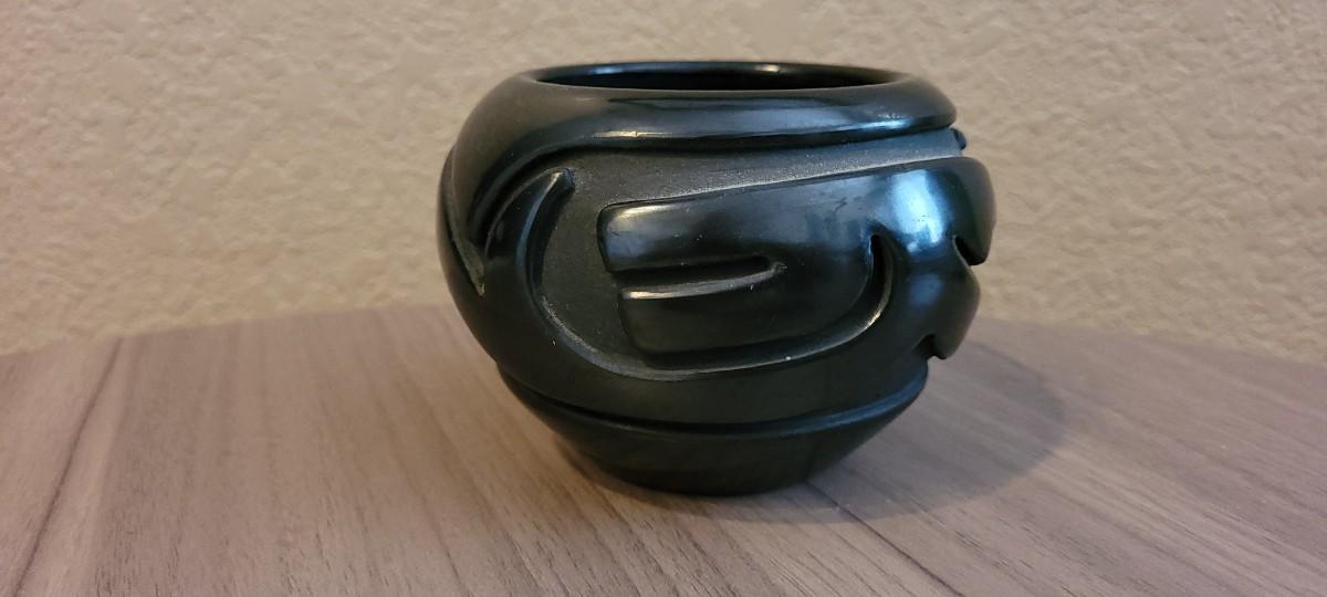 Excerpt: STELLA CHAVARRIA is a daughter of well known Santa Clara Pueblo potter, Teresita Naranjo (d). Stella creates carved traditional black Santa Clara pottery in a similar style as her mother but on a smaller scale. Stella's daughters, Denise Chavarria and Sunday Chavarria, are also outstanding Pueblo potters from Santa Clara Pueblo.