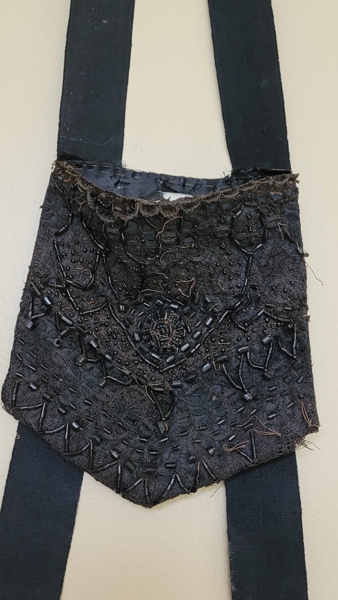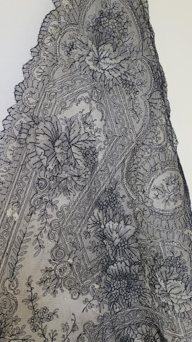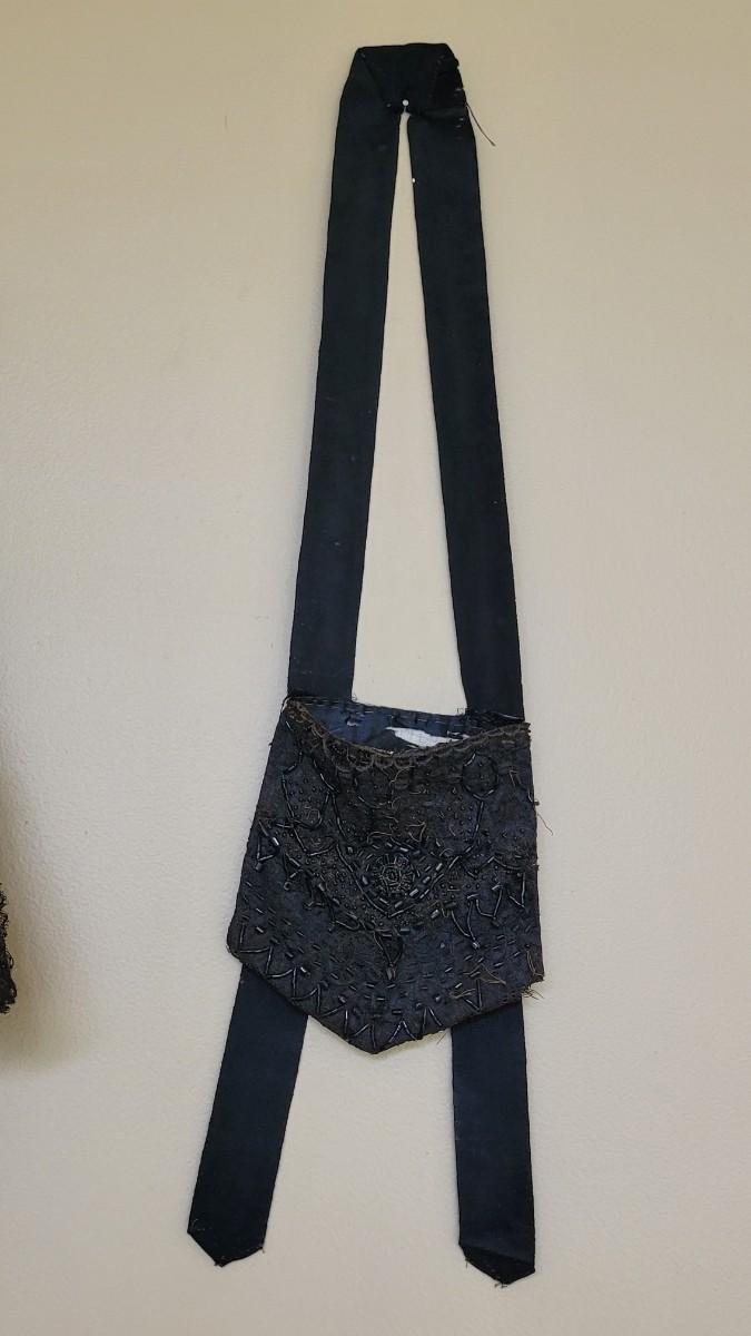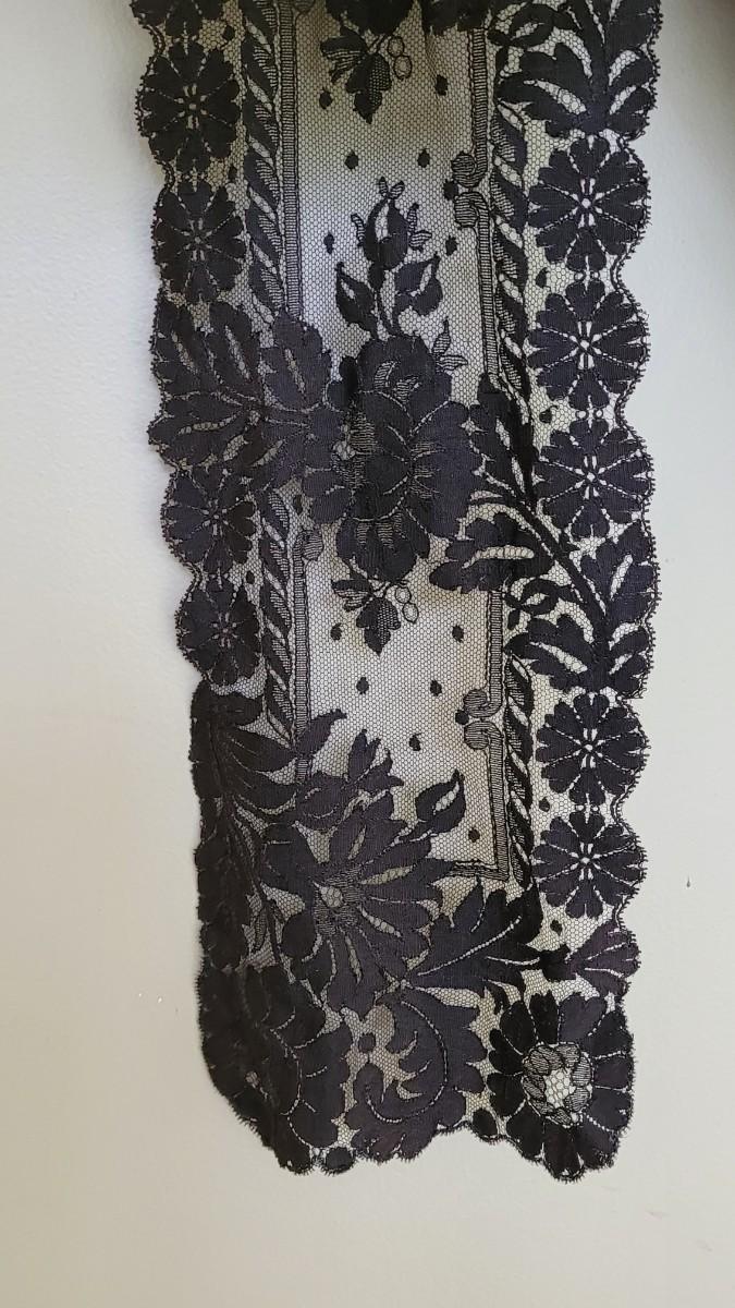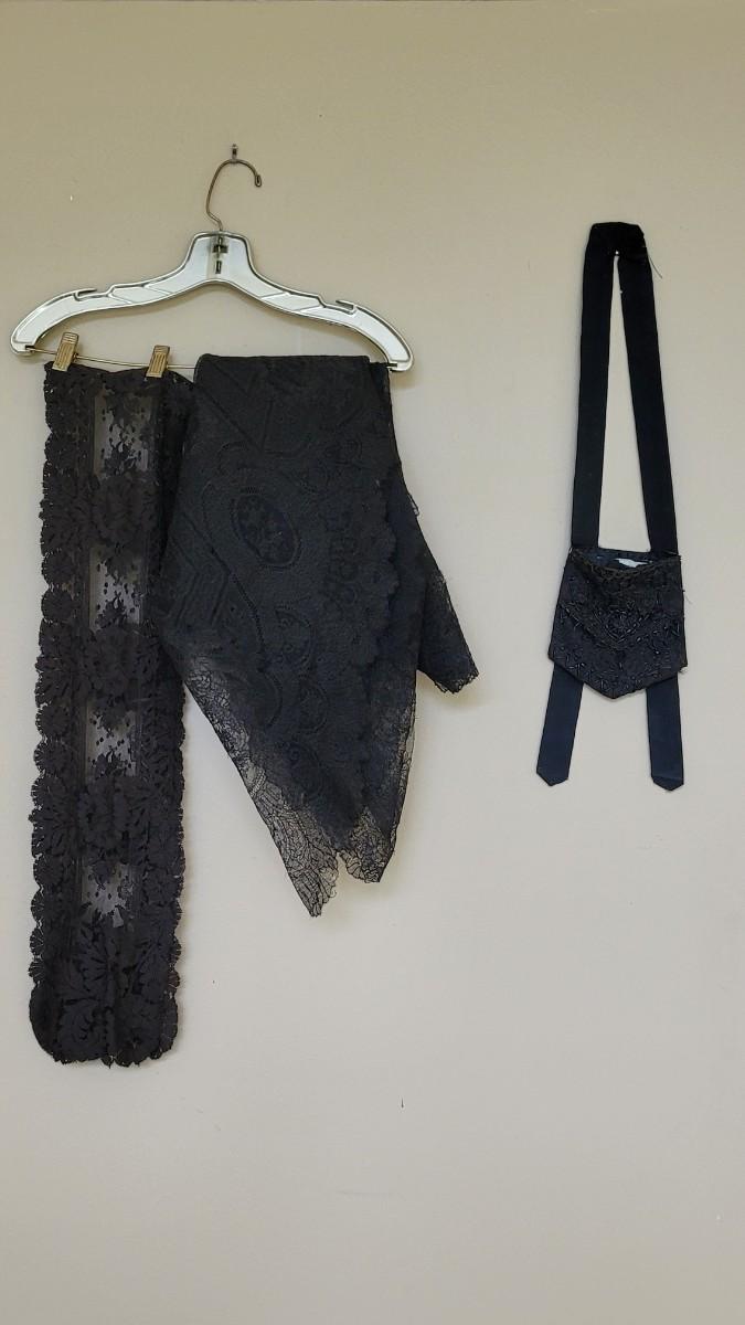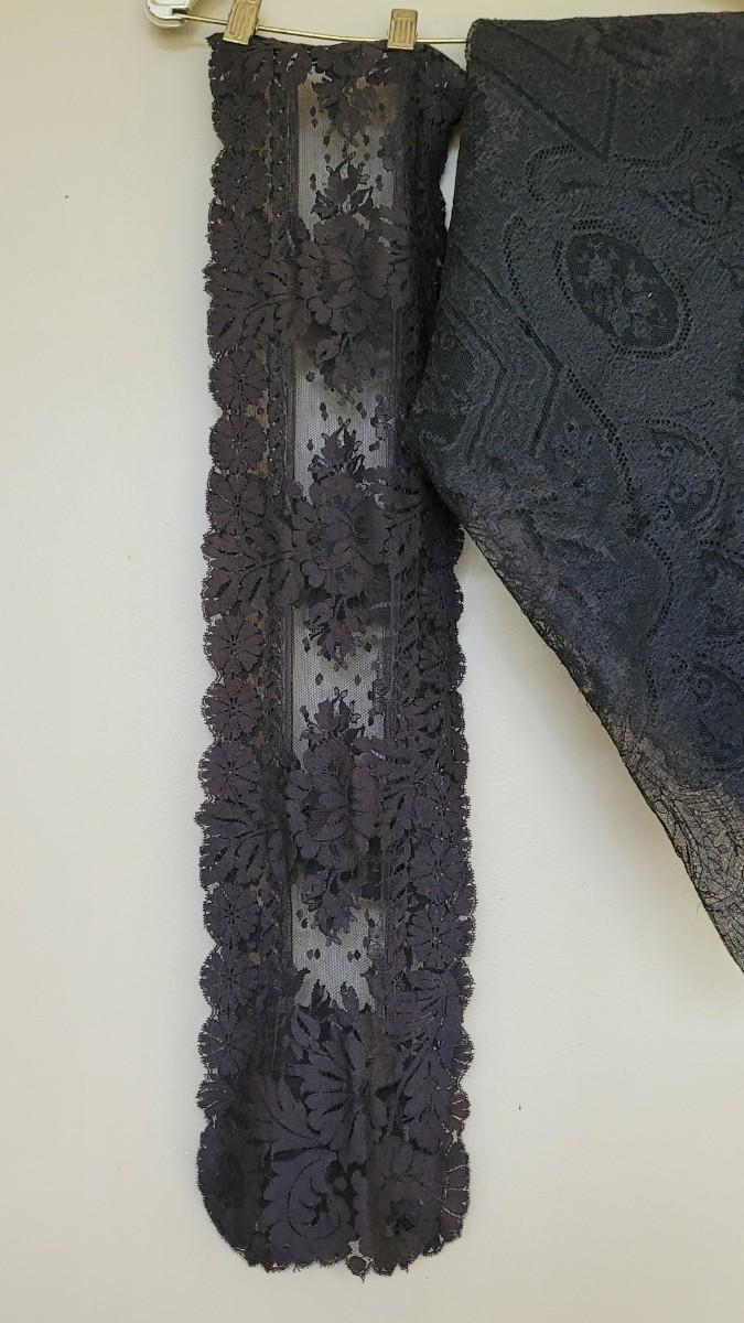 Lot 128: Antique Victorian Mourning Lace Shaw, Scarf and Purse/Pocket