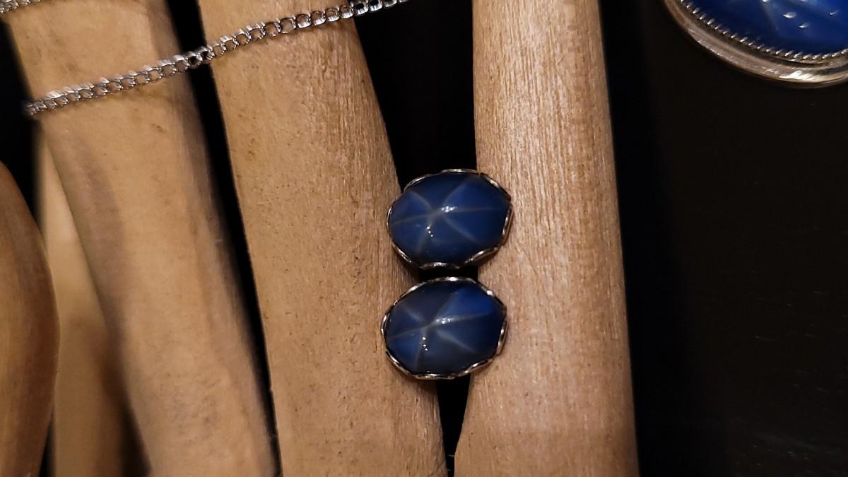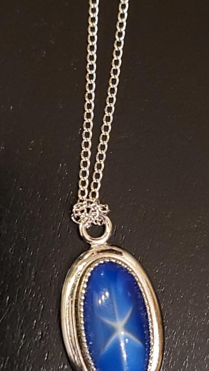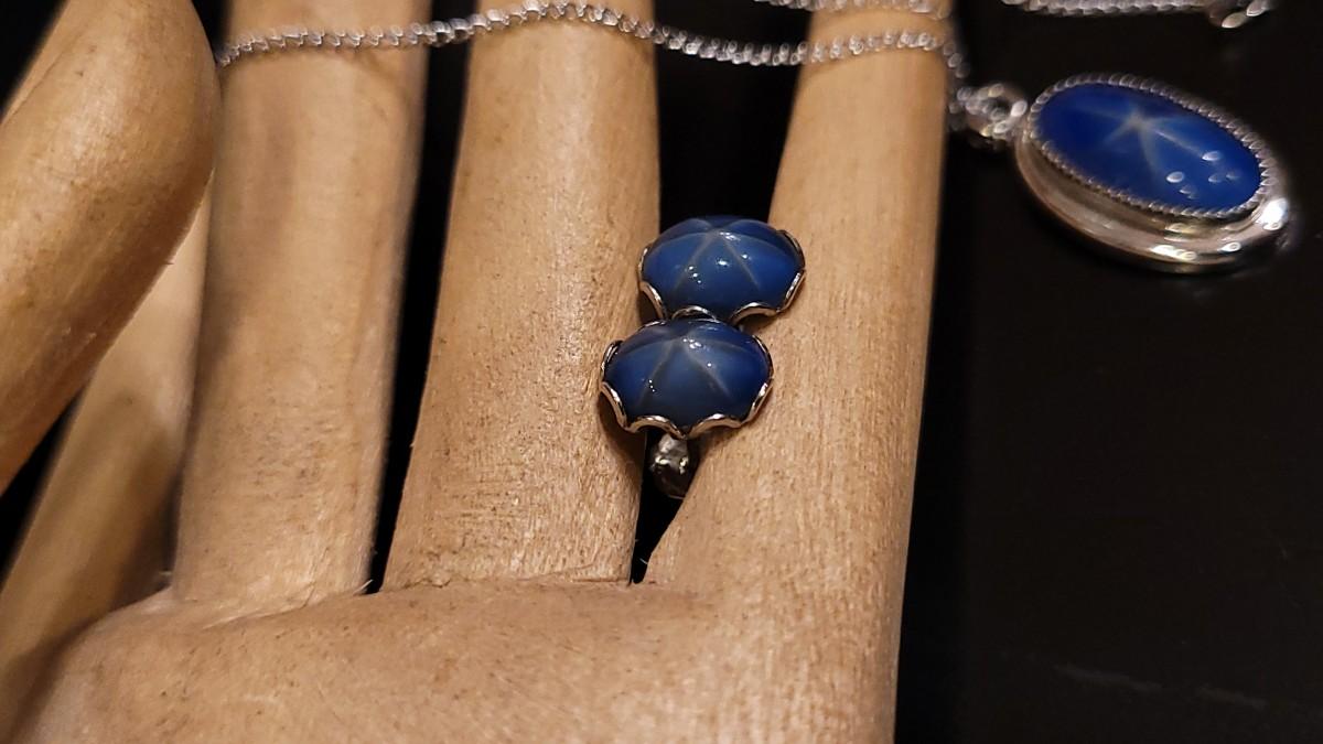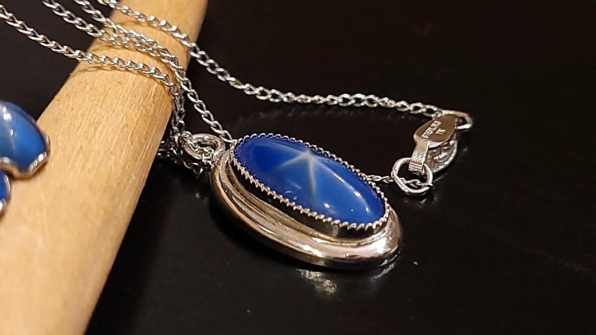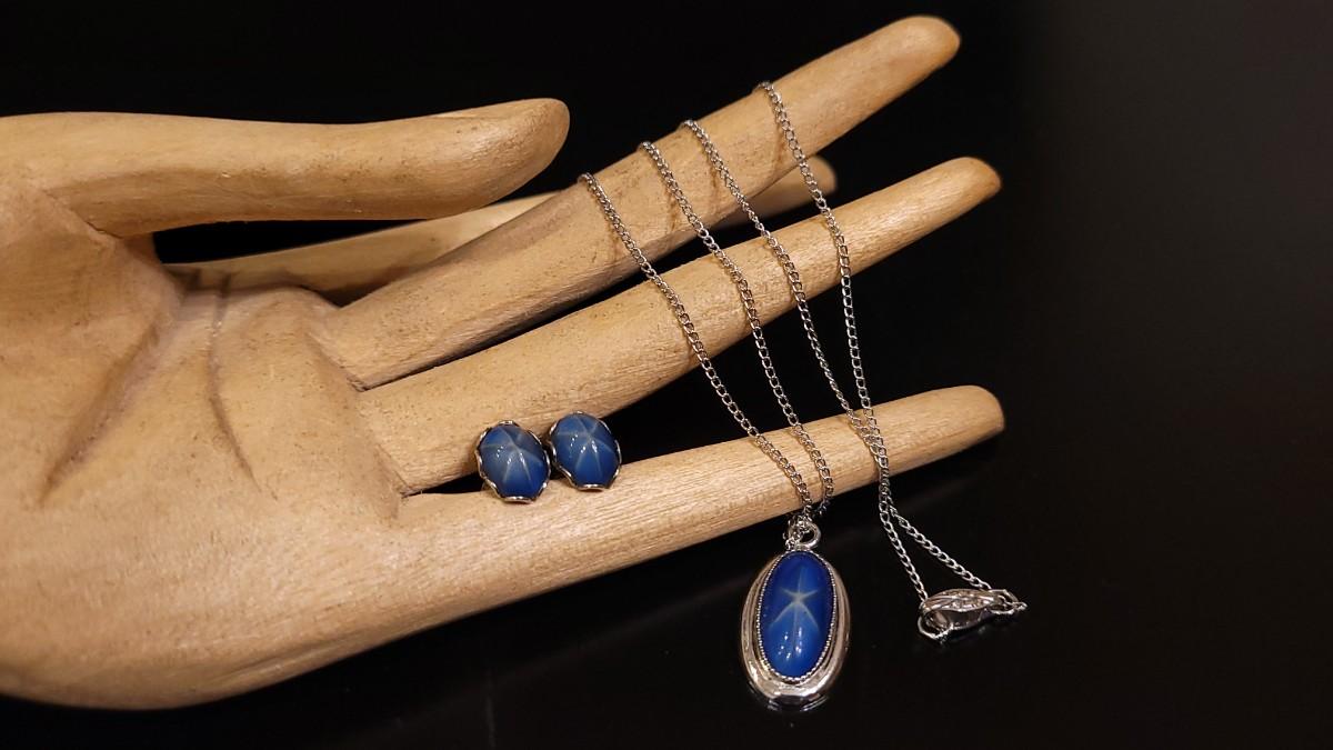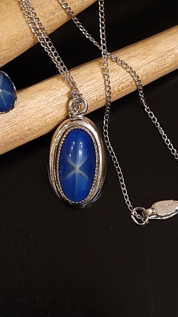 Lot 128: Sterling and Star Sapphire Necklace, Pendant and Earrings Set