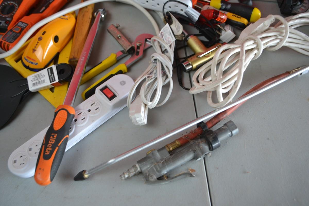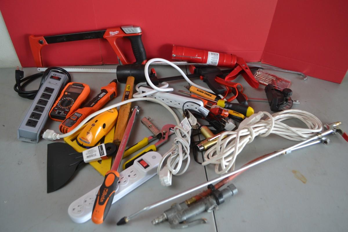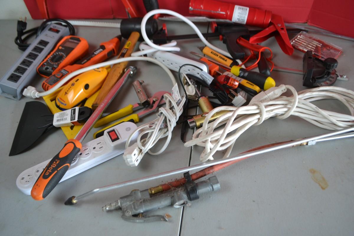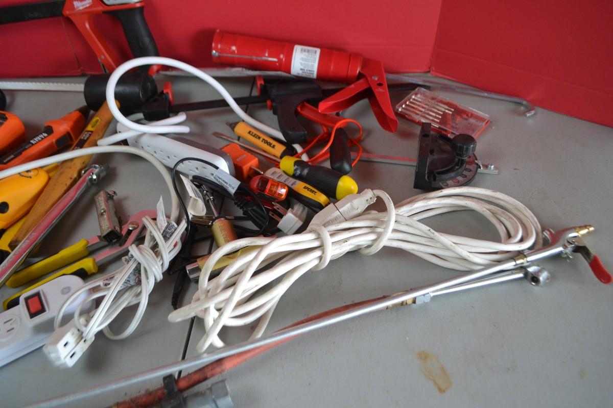 LOT 128. VARIETY OF TOOLS AND CORDS