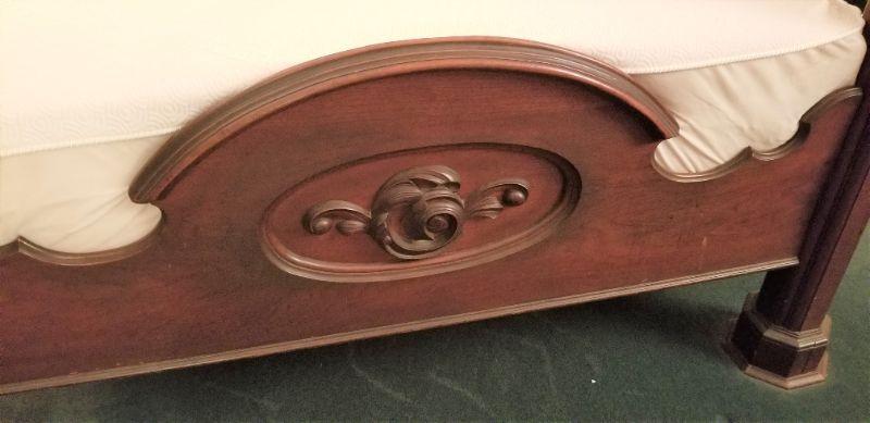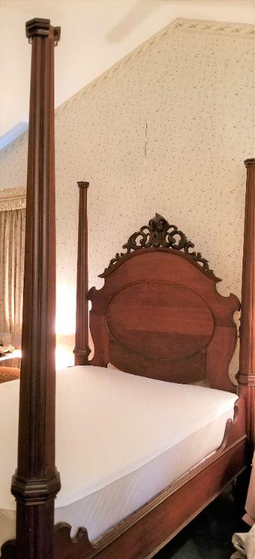 Lot #128  Antique Victorian Four Poster Bed with like-new Tempur-Pedic Mattress