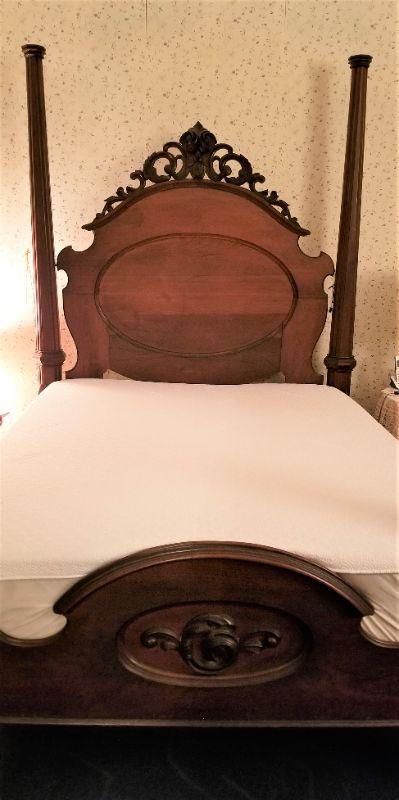 Lot #128 Antique Victorian Four Poster Bed with like-new Tempur-Pedic Mattress