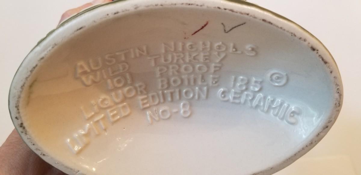 This great figural Austin Nichol's Wild Turkey Decanter is empty - measures 10" tall. Good condition.