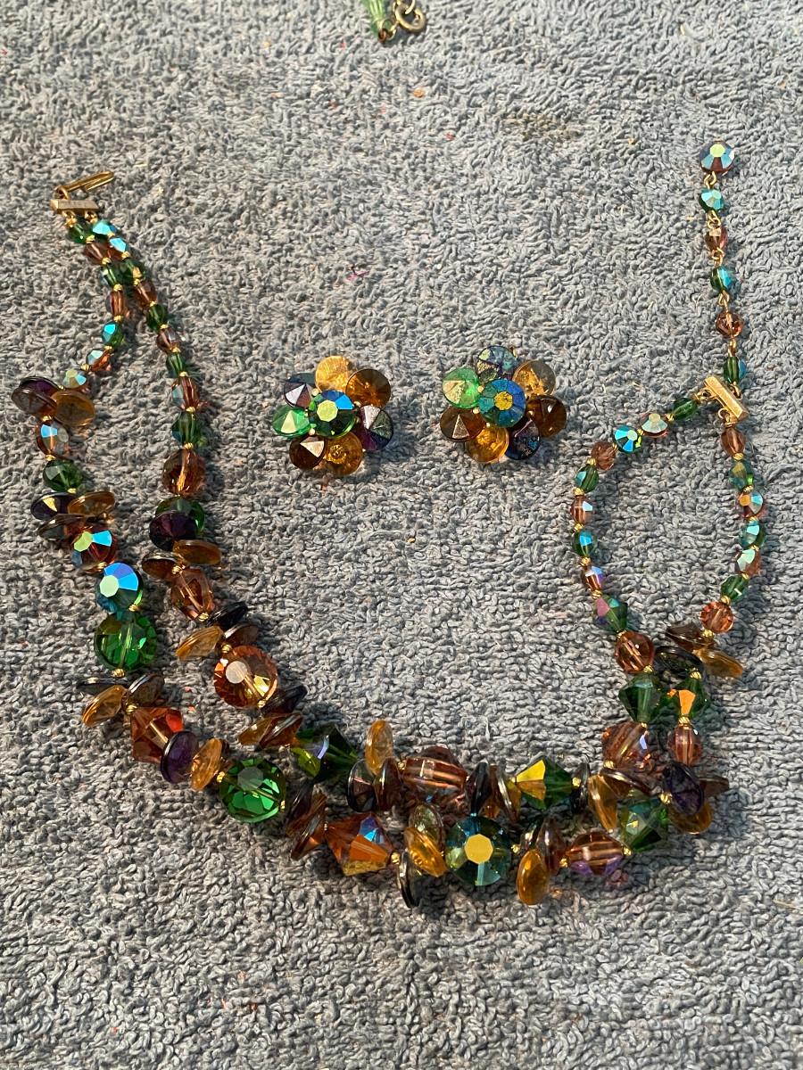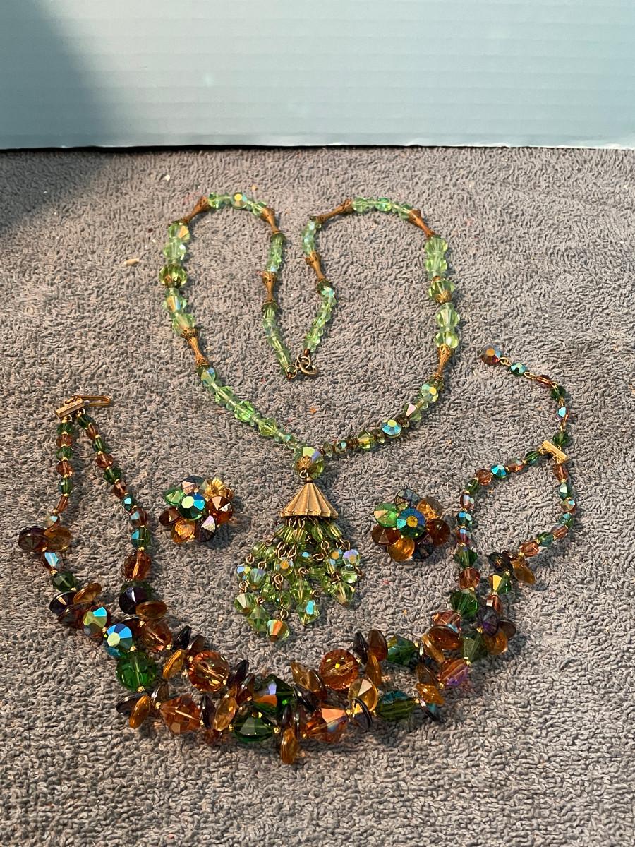THIS IS BEAUTIFUL VINTAGE SPARKLY ART GLASS BEAD JEWELRY!!! UNMARKED... LIGHT WEAR...